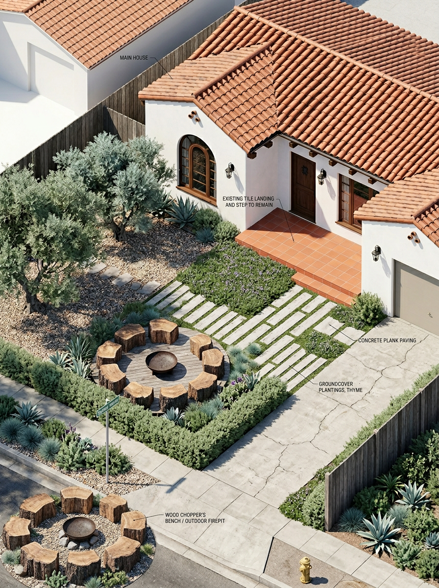 convert this landscape plan into a 3d isometric rendering remove all of the text