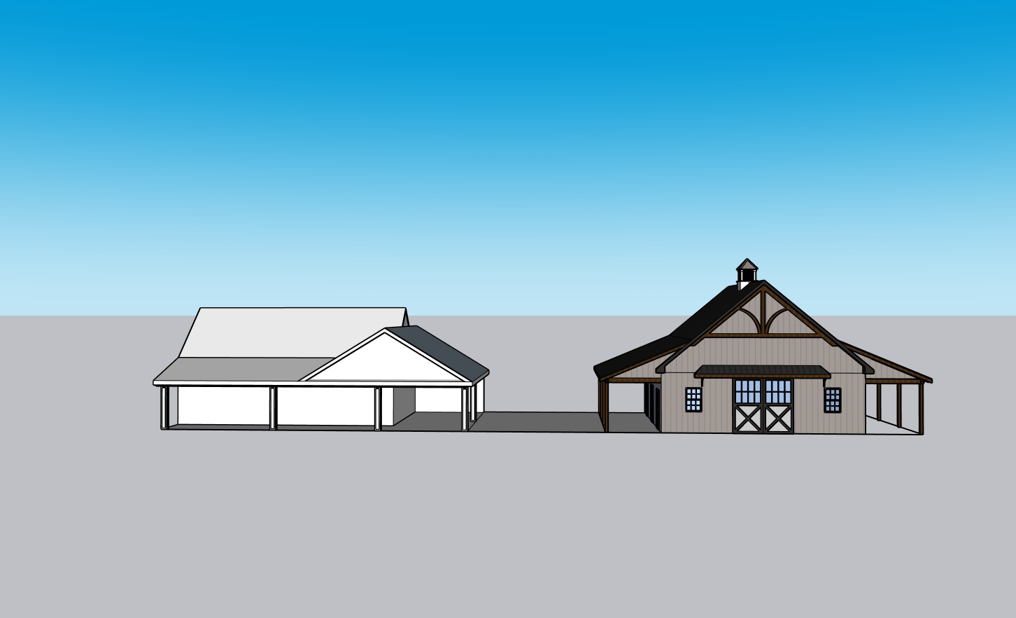 horse property with house and barn drylot between house and barn large front porch timber frame style standing seam metal roof metal board and batten siding