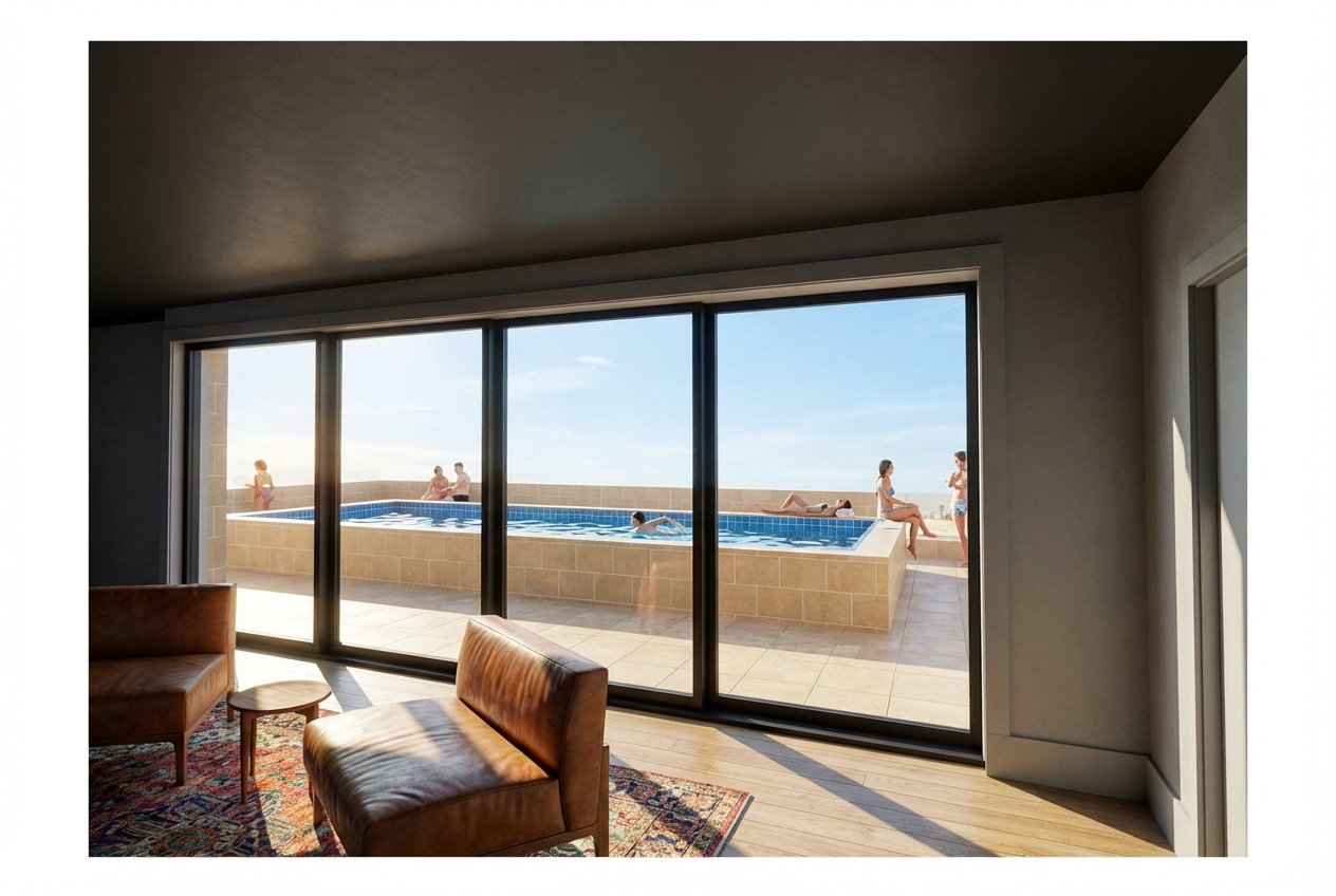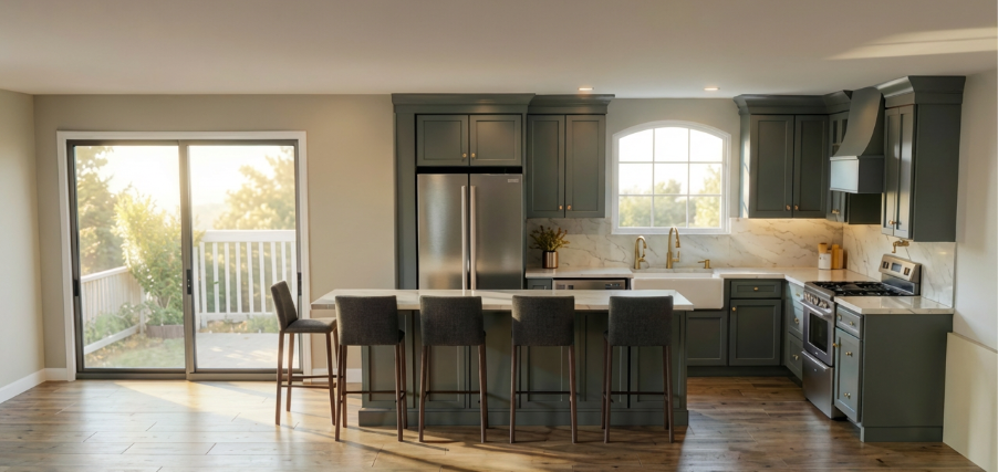 keep everything the same do not change color or materials only make the window molding and grid black only change that do not change anything else or add anything just make this look like a realistic photo rendering