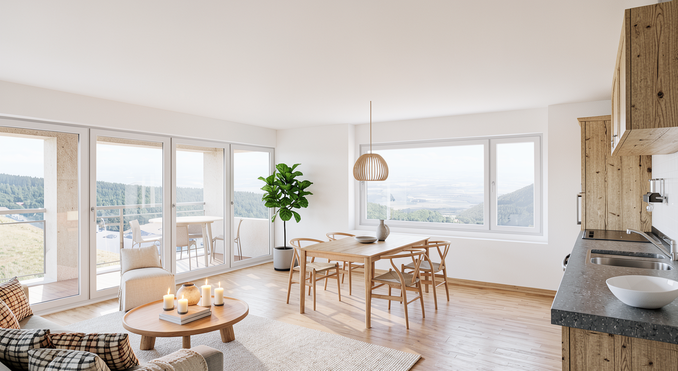 interior architectural photography of a modern private loft during golden hour bathed in warm soft golden light filtering through the linear skylight running along the ceiling right side background wall on the right behind the iron and glass wireframe bookcase in a warm rich gray pink color cipria two bulb lamp warmly enlighted dark wood matt parquet flooring large industrial iron and glass partition wall showing warm glints left wall deep matte black home theater zone with tv on the left wall a soft warm tv screen glow white ceiling fans design icons flos taccia lamp casting a focused warm light kartell bourgie lamp with a decorative warm shimmer and transparent kartell ghost chairs reflecting the golden hues preserve the original artworks and their composition overall soft focus with a luxurious cozy and inviting feel 8k resolution cinematic lighting