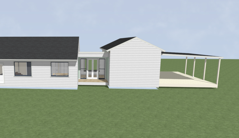 modern farmhouse barn style home exterior with a simple gable roof form white vertical cladding board and batten or vertical timber cladding painted white paired with a clean white metal roof black framed windows and large glass doors creating strong contrast against the white exterior feature a large plain light natural timber front door minimal design no panels with warm tone timber porch posts and simple timber beam detailing covered entry porch with exposed timber posts and beams clean and minimal no decorative trims design is simple symmetrical and architectural no clutter no ornate detailing set in an australian acreage landscape with soft grass natural light and open space style modern farmhouse meets australian barn house inspired by the local project minimal high end architectural