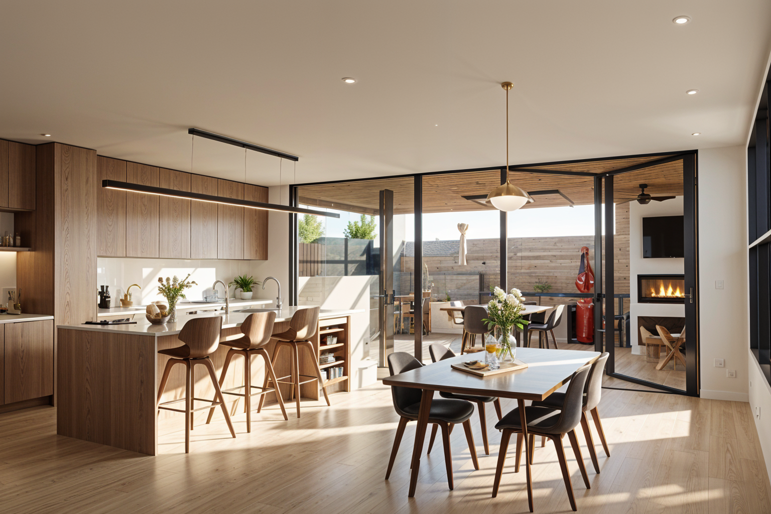 transform the provided elevation into a hyper realistic interior photograph that is indistinguishable from a real professionally shot interior design photograph this must read as a real space captured by a camera not a rendering not a visualization not architectural cg not concept art and not an illustration geometry lock non negotiable preserve the exact original geometry layout proportions ceiling details wall depths panel divisions openings doors cabinetry locations millwork dimensions built ins and circulation paths with zero architectural changes nothing may move scale simplify or be reinterpreted geometry must remain absolutely unchanged camera derivation critical derive the camera position height angle and framing strictly from the uploaded elevation eye level interior photography centered or naturally balanced composition 24 35mm interior lens feel no dramatic angles no stylized framing do not reuse or approximate camera framing from any previous image remove all drawing artifacts completely remove all linework cad edges drafting outlines diagrammatic shapes sketch artifacts nothing may appear outlined flat schematic or illustrative the elevation must be visually reinterpreted as a finished real interior photograph material realism rules wood if present smooth solid plank material extremely subtle restrained grain matte or soft satin finish only no graphic patterns no decorative striping no visual noise wood must absorb light gently never glossy or sharp fabric upholstery if present soft compression subtle seams gentle shadowing natural fabric texture no flat color blocks stone slabs if present light natural veining soft organic variation low contrast no symmetry no bold or busy patterns stone must feel heavy and grounded walls fine surface texture slight tonal variation never flat paint edge construction realism all edges corners joints and transitions must be softly broken and physically realistic no razor sharp corners no cgi perfect edges slight construction tolerances only everything must read as fabricated installed and dimensional lighting photographic behavior lighting must behave like real high end interior photography natural daylight only unless otherwise specified realistic light bounce gentle shadow falloff uneven exposure distribution subtle brightness variation across surfaces avoid studio lighting uniform illumination over clean exposure global illumination look slight softness is preferred over sharpness camera image imperfections very important introduce subtle photographic characteristics gentle lens softness micro exposure variation natural contrast roll off mild atmospheric depth primary plane sharp background slightly softer the image must feel captured not generated absolute constraints no creative interpretation no stylization no exaggeration no added or removed elements any deviation from the original elevation geometry or intent is unacceptable negative prompt always include architectural rendering 3d visualization cgi unreal engine octane vray sketchup look flat textures graphic lines outlined edges over sharpened studio lighting concept art illustration ai look plastic materials glossy wood high contrast grain perfect symmetry keep design as shown in the picture keep the design as it is in image light cabinets are white and brown cabinets are white oak keep design in the image as it is including materials