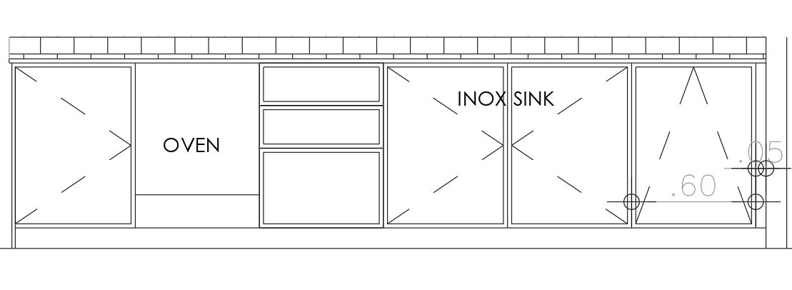 keep the render exactly remove the oven put drawers and remove the tall cupboards on the right and left