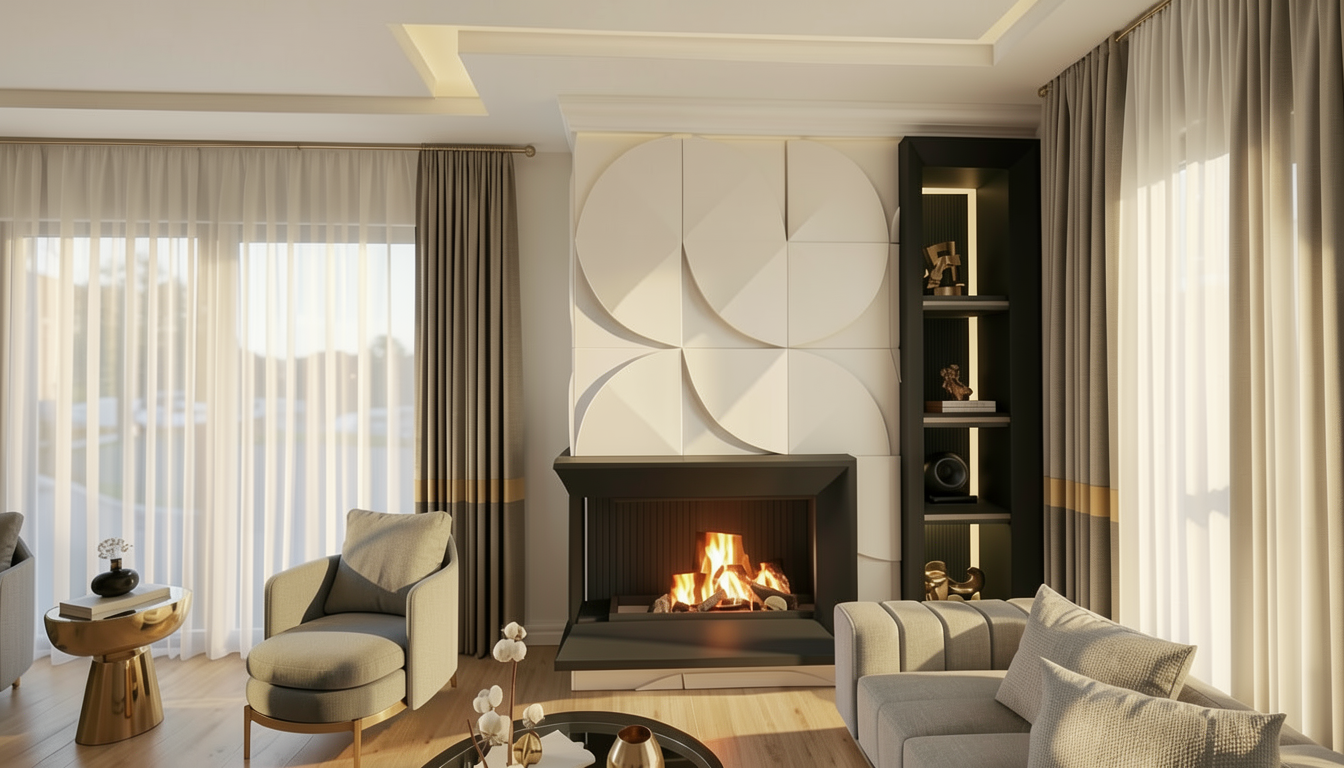 keep modern rectangular stone black slate siding on the dark grey areas of the house lake in forground