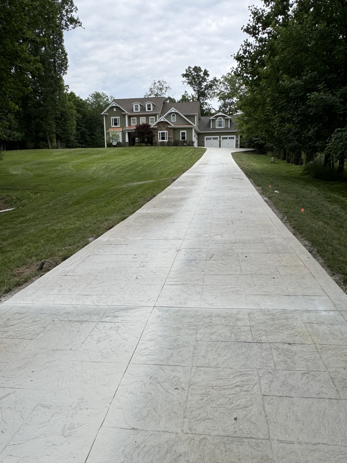 layered flower beds low maintenance shrubs native plants landscape lighting along the driveway on both sides