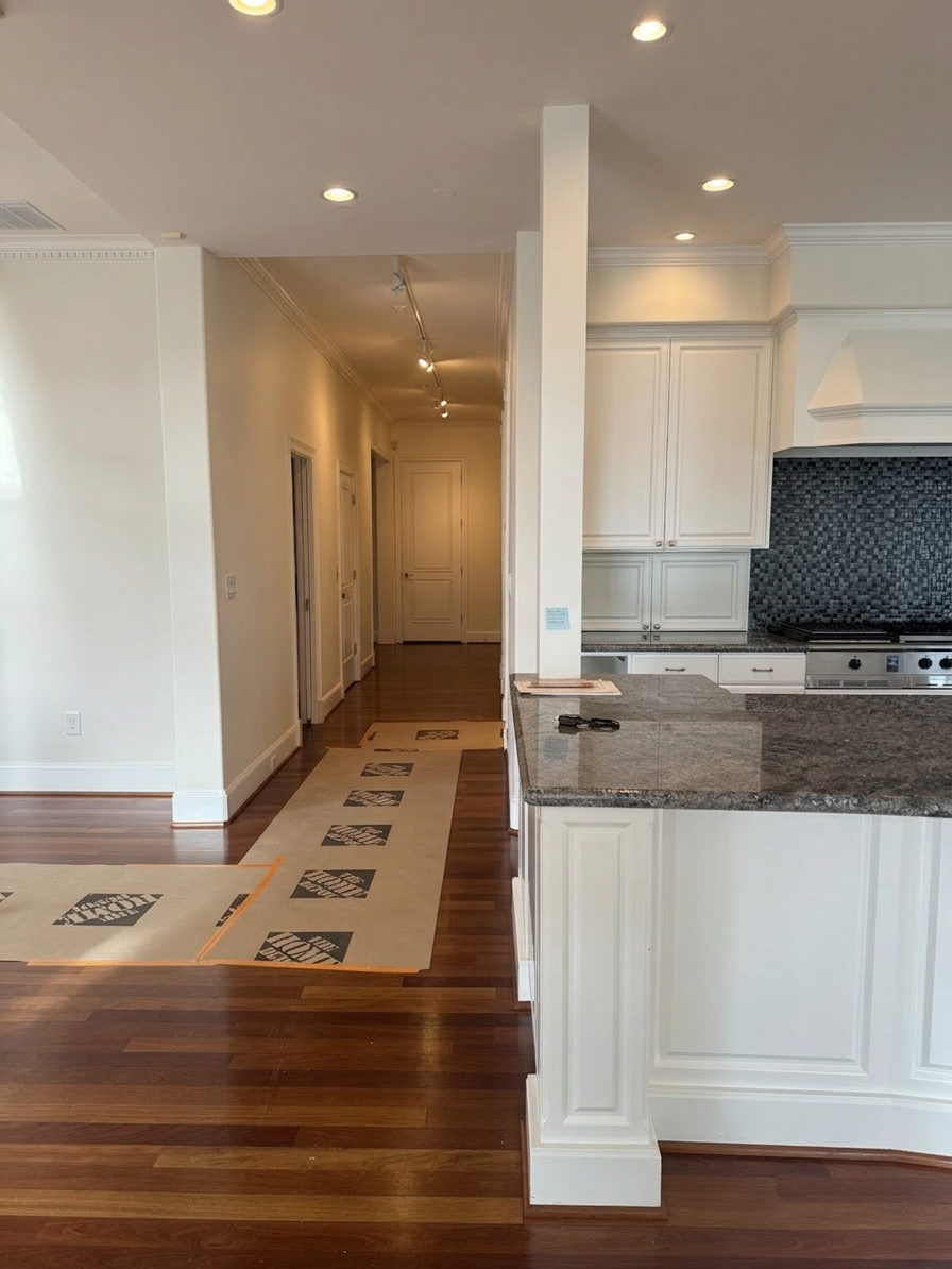change nothing make this more realisitic brighten slightly do not add backsplash over stove and turn off the lights