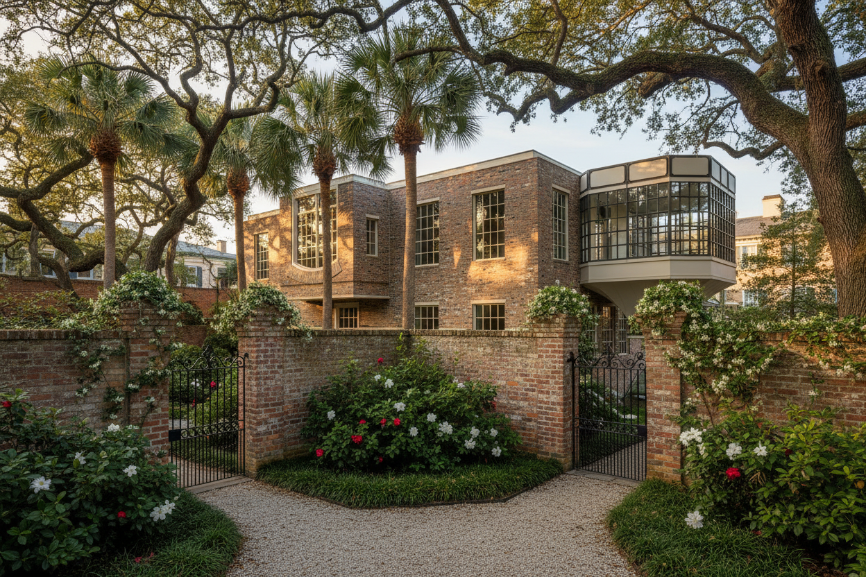 the walls are dark red brick the concrete patio is antico quoqina concrete finish the spa and firepit have the same stone as the house