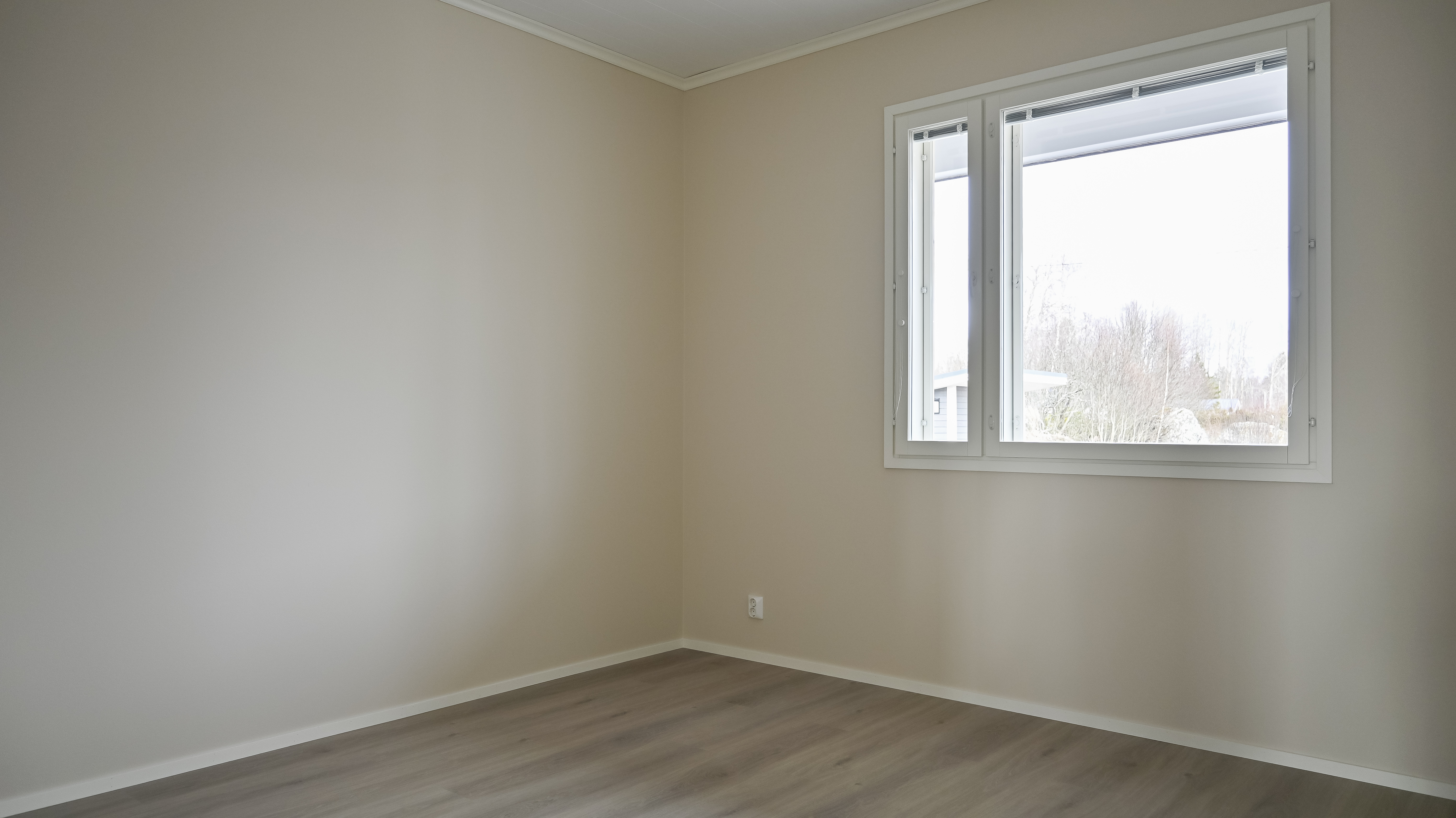 don t change the original architecture or layout of the photo nordic interior in a newly built compact bedroom with soft natural light and a calm neutral base styled as a lived in home not a showroom with a functional layout suited for a smaller apartment furnish with a light nordic aesthetic a comfortable bed with layered neutral textiles light bedside tables and a soft textured rug materials are warm and natural linen wool light wood and matte surfaces color palette warm whites beige soft greys and light wood tones keep the space minimal and uncluttered only essential furniture atmosphere is relaxed balanced and authentic and liveable