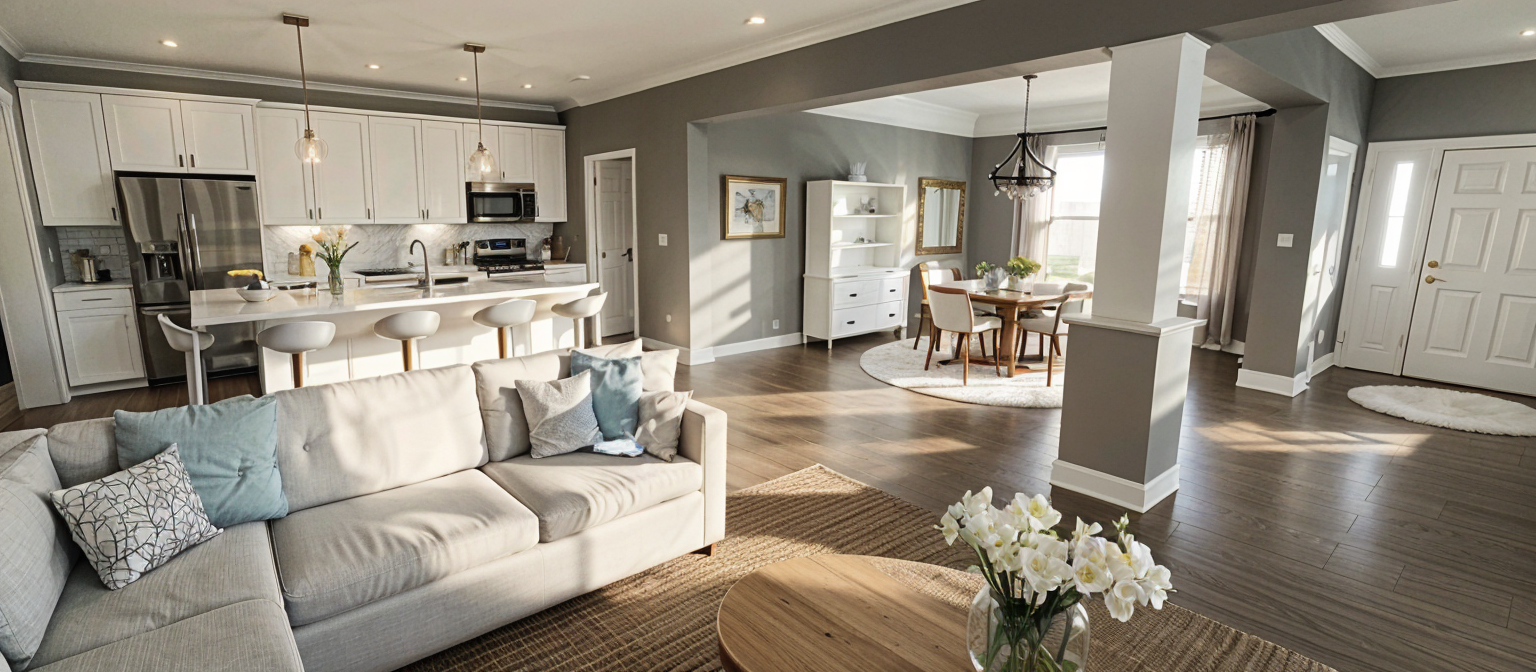 create a romantic indoor scene for valentine s day of husband pouring a glass of wine for his wife at the kitchen island
