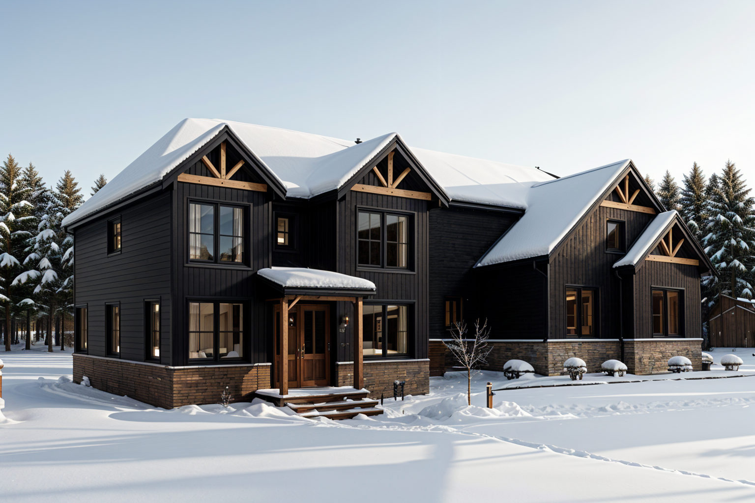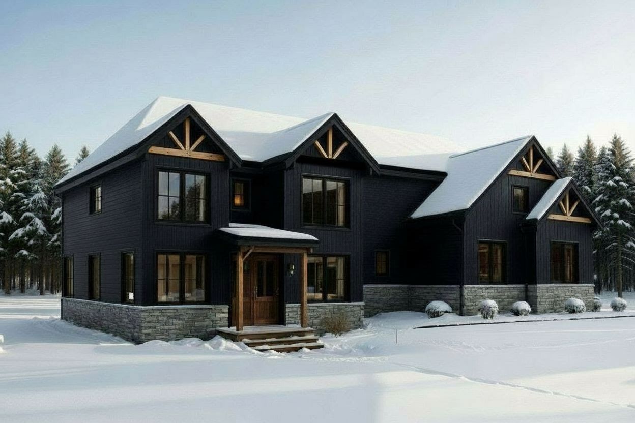 dark blue siding black window trim flat stacked stone veneer only below the windows leave all siding directions as is