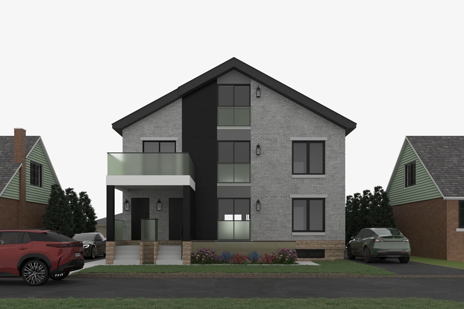 improve the quality and sharpness of the image and maintain the materials of the scene soft morning light show mature trees in the background the lights in the units are on