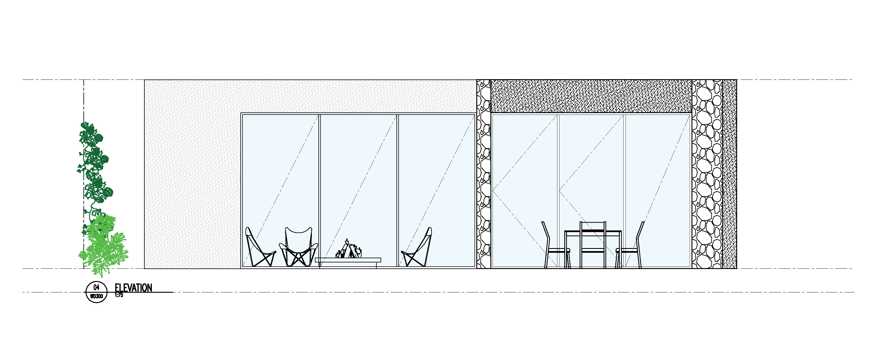 architectural hand sketch rendering of a modern mediterranean l shaped poolhouse with flat rendered roofs and stone accents drawn in the style of an architect s sketch use calm neutral render coloured render black window frames and rendered coloured hinged doors on left side outdoor kitchen is open on the righthand side and set back 8 metres from the inside section on the left show strong contrast and bold color blocking light off white panel areas and warm natural stone accent walls windows should have black frames and cool blue reflections render expressive freehand linework with visible marker streaks and layering emphasizing depth and tone include foreground native trees and plants on left and background native trees and plants on the right with green foliage loose shadows and a soft blue sky wash behind the overall composition should feel energetic balanced and artistic like a presentation board sketch style tags architectural marker sketch hand drawn rendering copic style modern mediteranian pool house charcoal contrast presentation board illustration architecture