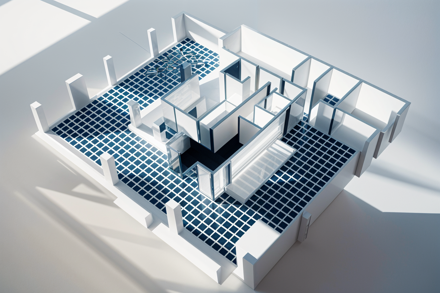 interior shot luxury walkin wardobe in white with polished white marble flooring