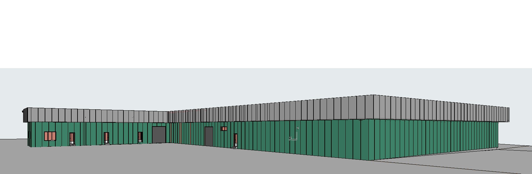 make realistic render use colors prom anels green ral 6020 and white 9003 change the ambiance to sunset light