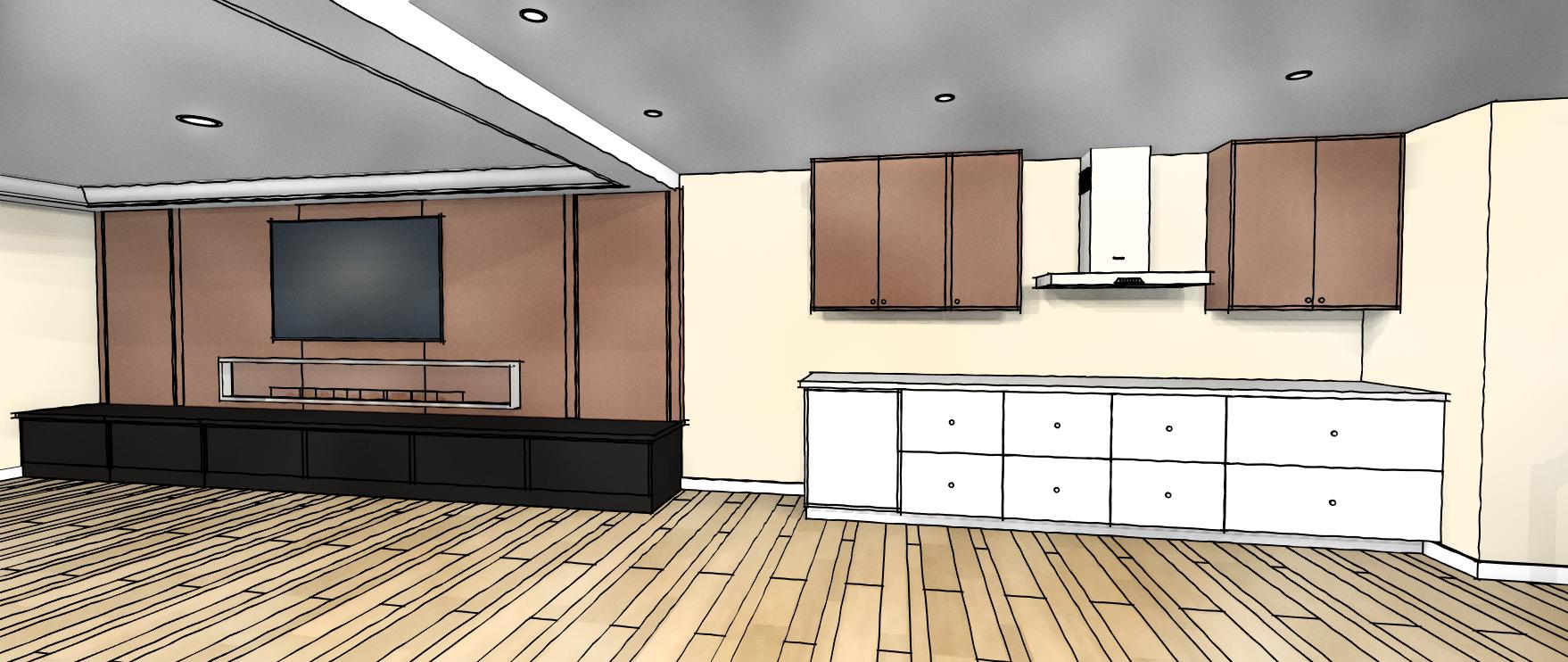 have the wood grain in the cabinets all go the same way the floor is a 24x24 light off white polished tile