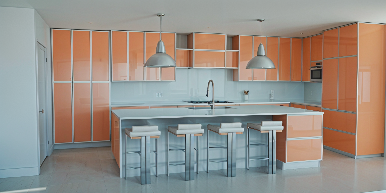 exterior shot ensure even lighting throughout drawing kitchen cabinets should be white as per model navy blue island as an accent straight plank flooring architecture