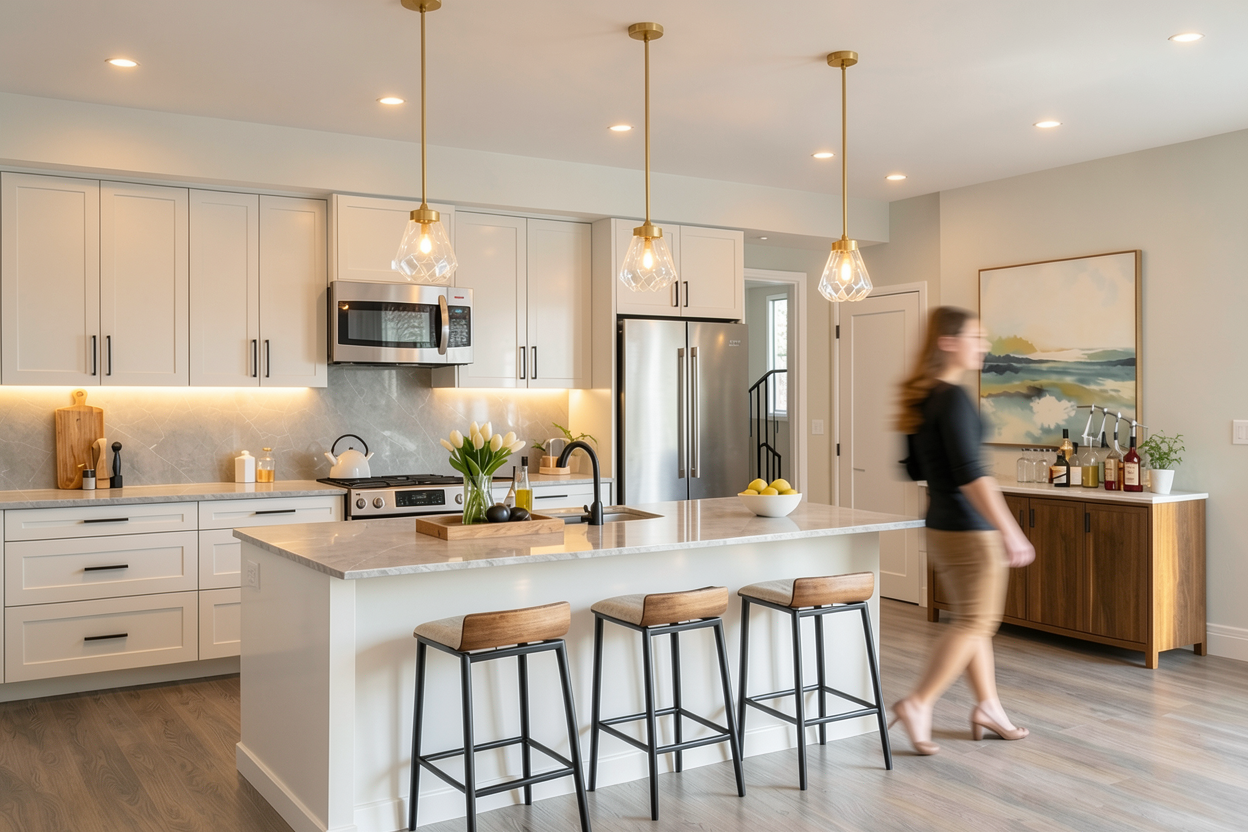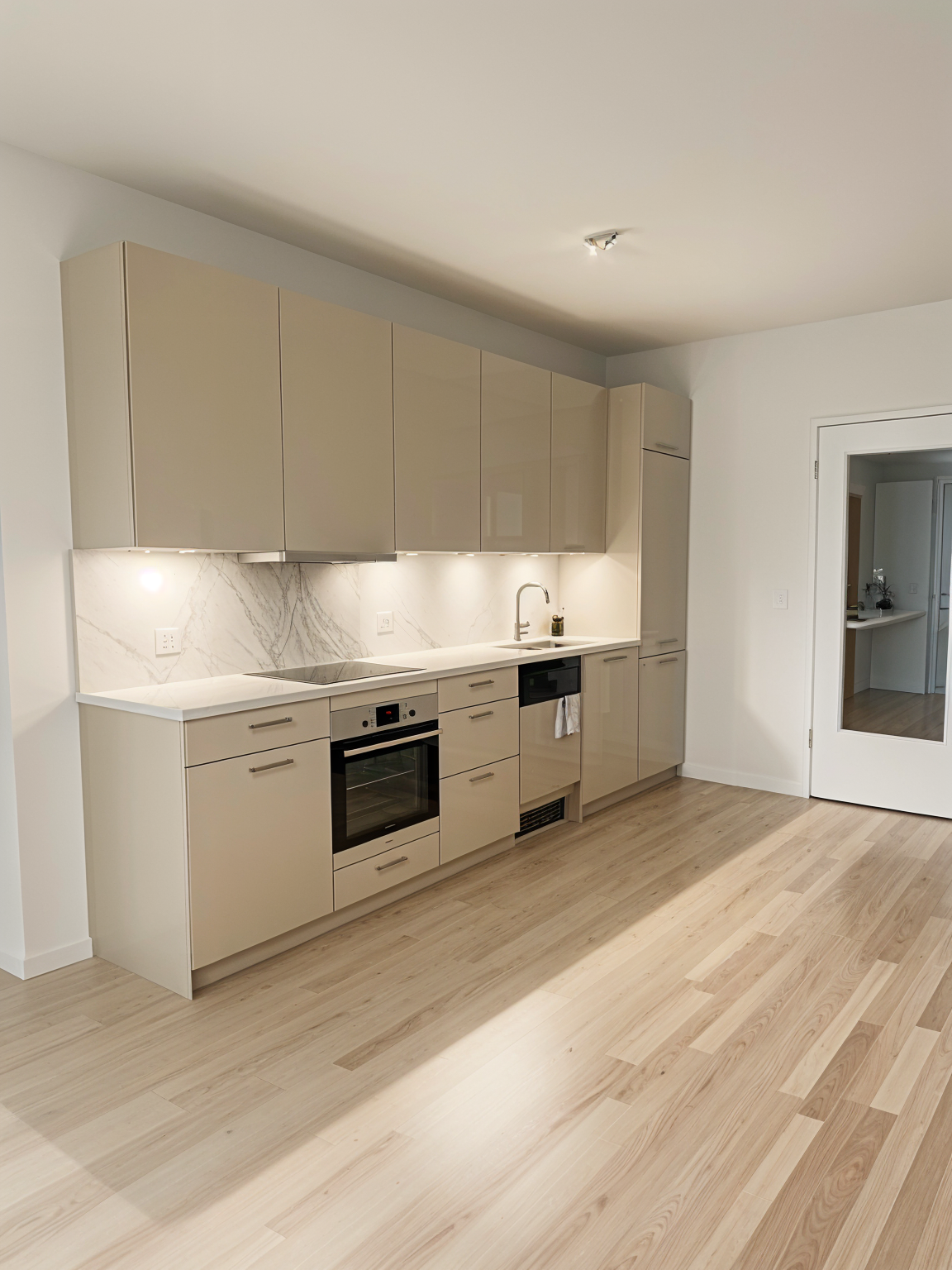 the house and patio should be white with a silver metal roof and palm trees should be placed so that they do not overly block the view
