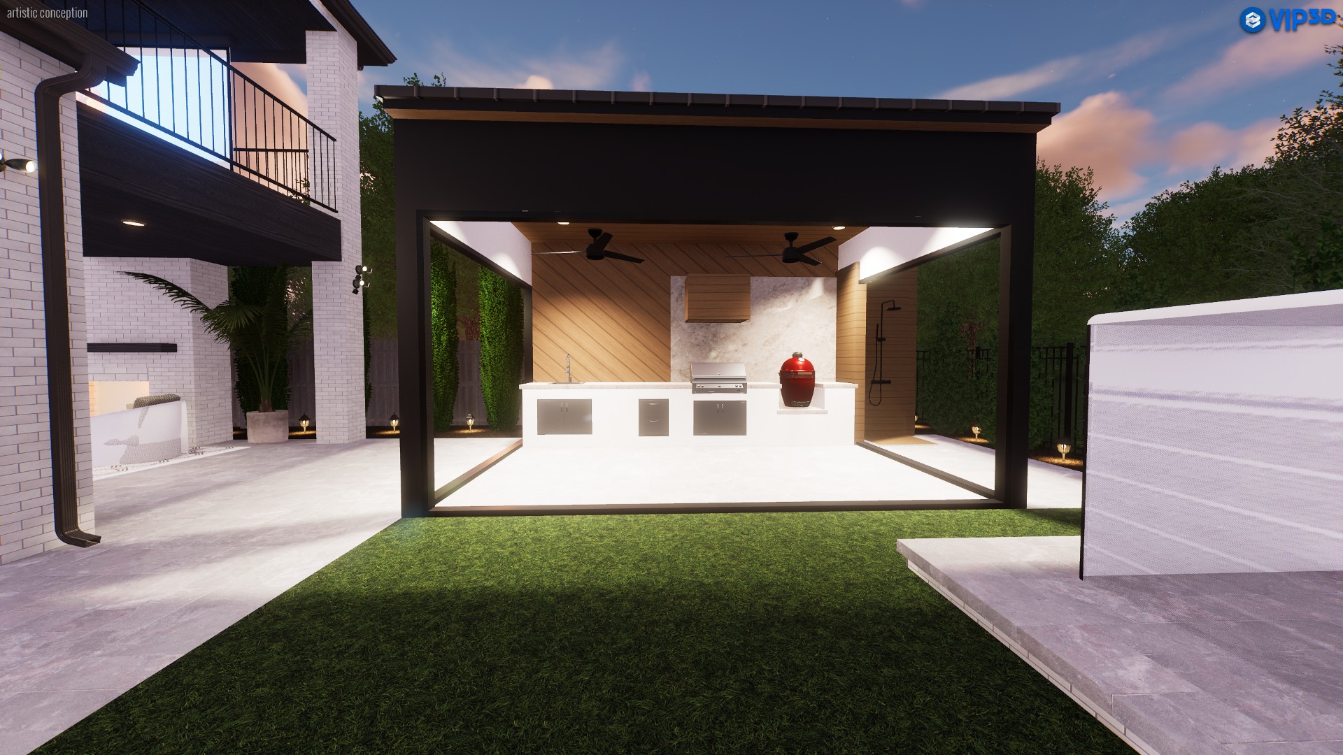 exterior shot the red item is a kamado joe please keep that in the photo next to the grill