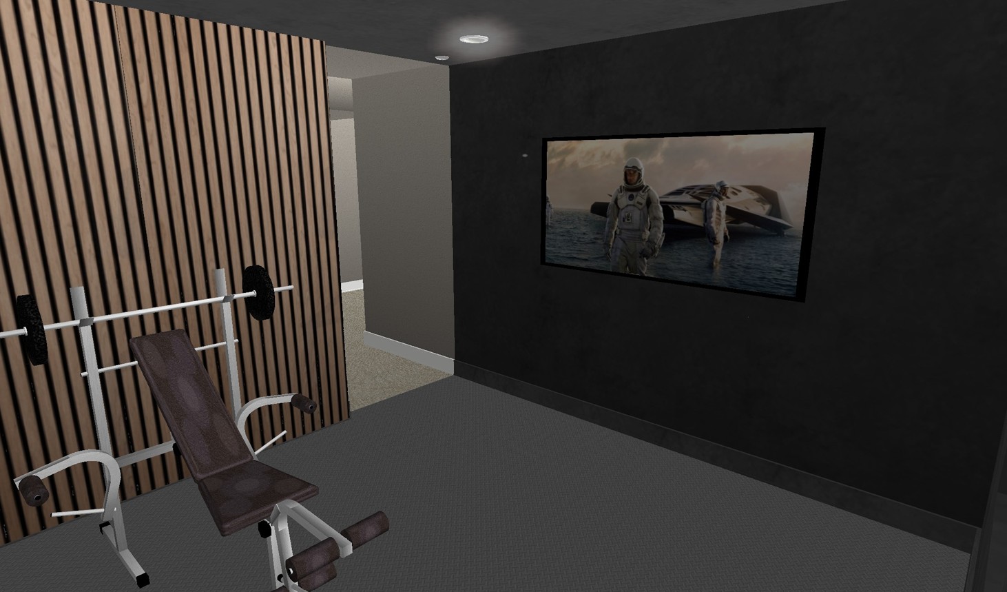 show additional weight equipment and free weights neatly organized freeing up space on the floor