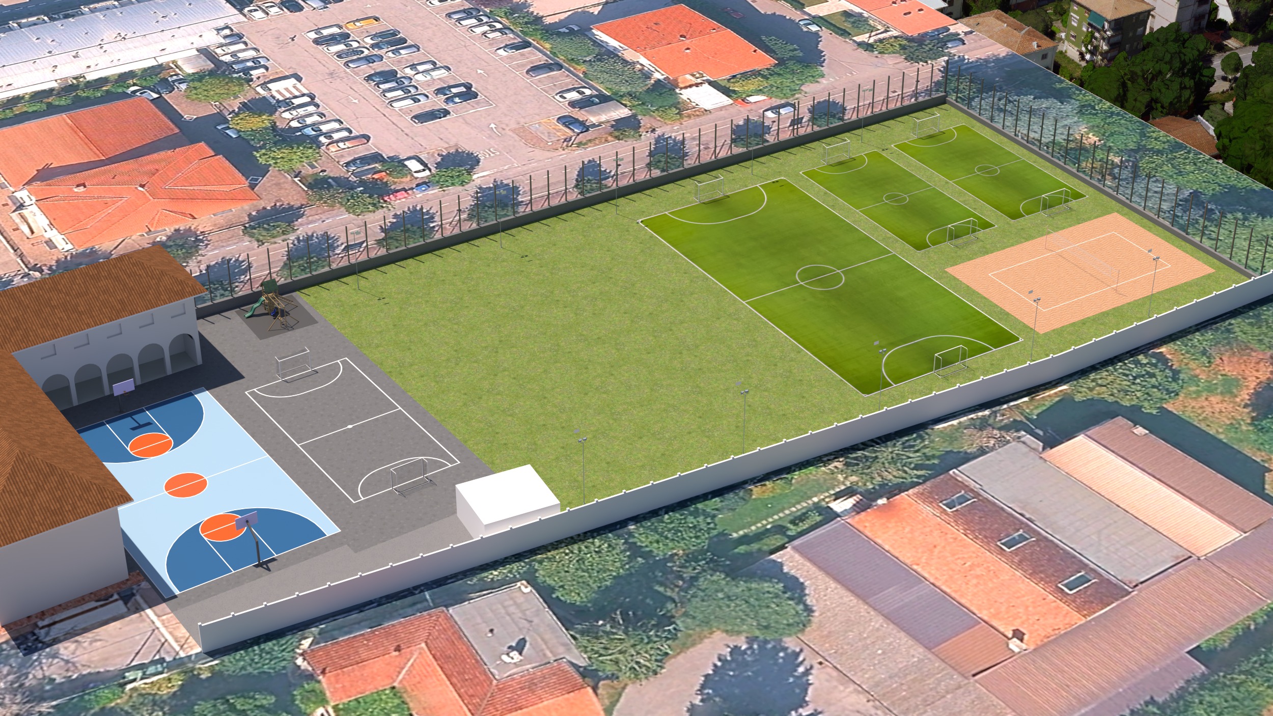 photorealistic architectural visualization drone photography style tilt shift effect global illumination ultra detailed textures