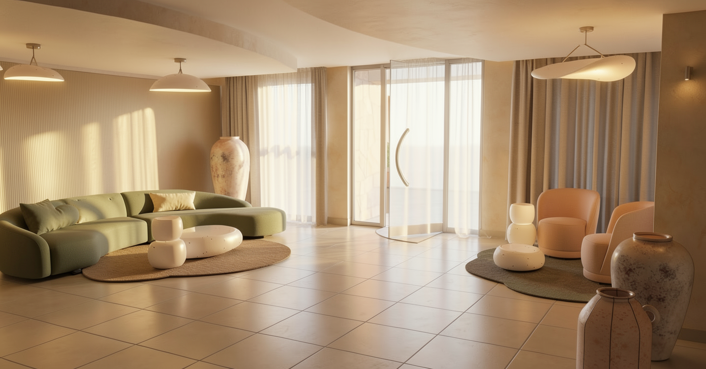keep the exact layout materials and colors unchanged add slightly more cream into the tile color only