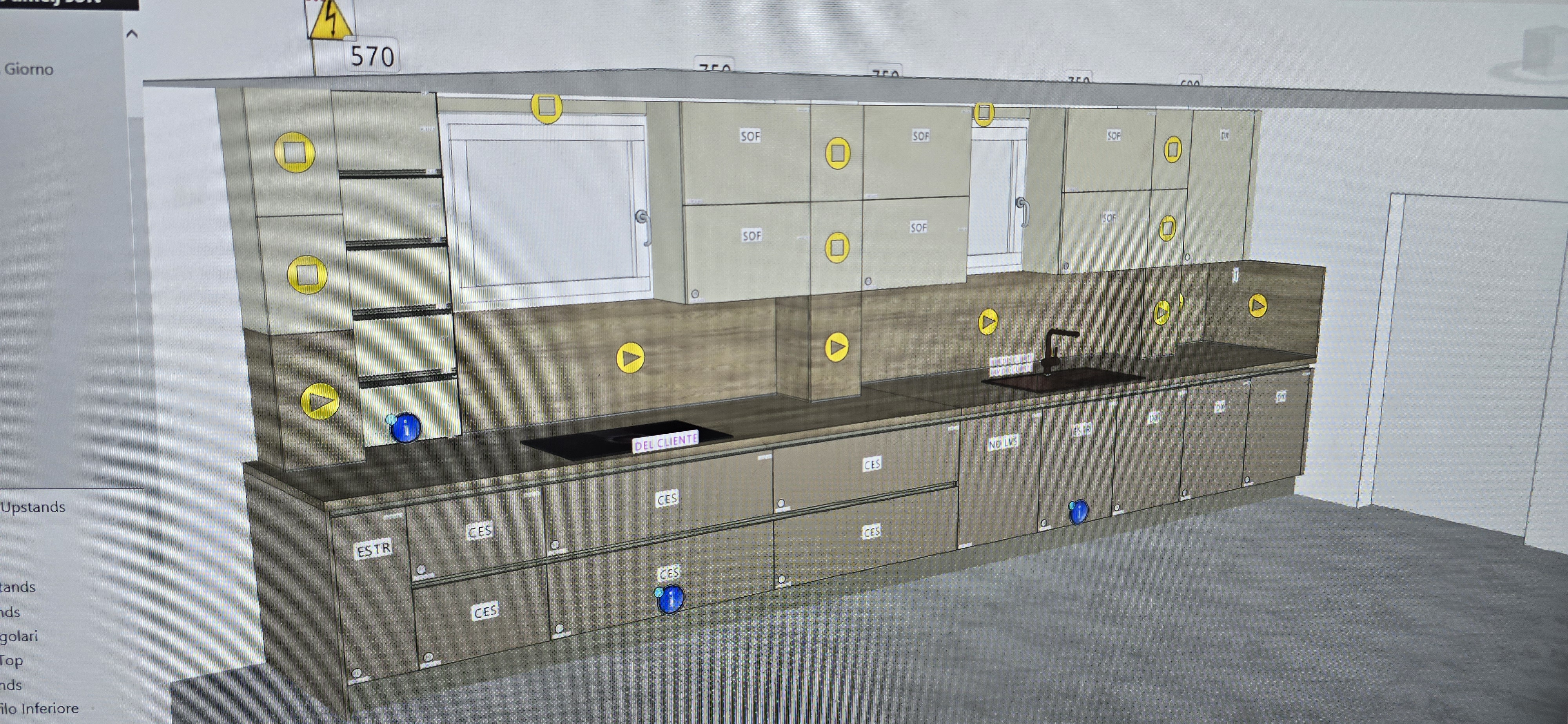 render a modern kitchen design with a sleek atmosphere the cabinets are in a soft beige color complemented by matte black handles use a rich dark walnut finish for the countertops and backsplash to create a warm contrast the sink is elegantly integrated with a minimalist black faucet the walls are a light gray enhancing the spacious and airy feel the floor is a smooth medium gray tile that harmonizes with the overall palette include soft ambient lighting to create a cozy inviting environment the window frame is white allowing natural light to brighten the space