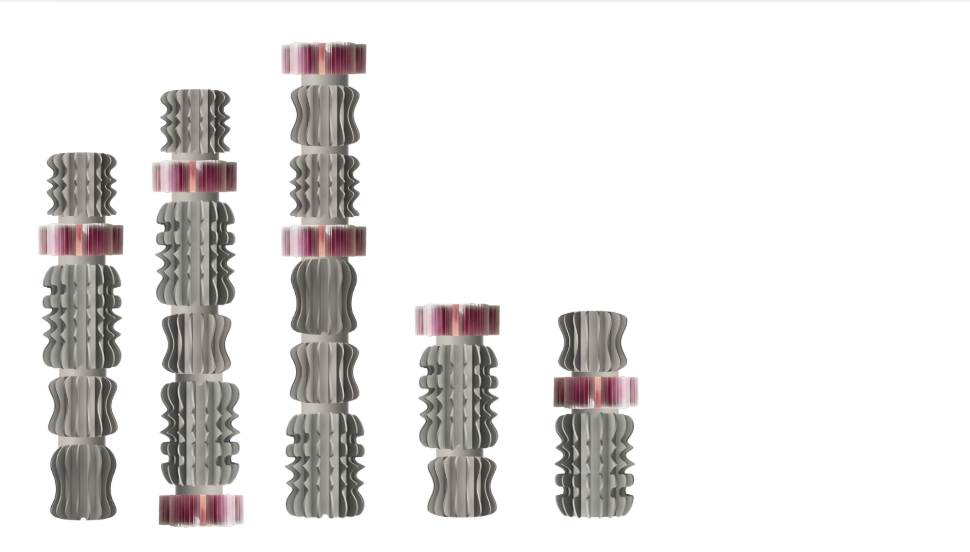 5 floor lamps of different heights they are made up of different spikes and curves