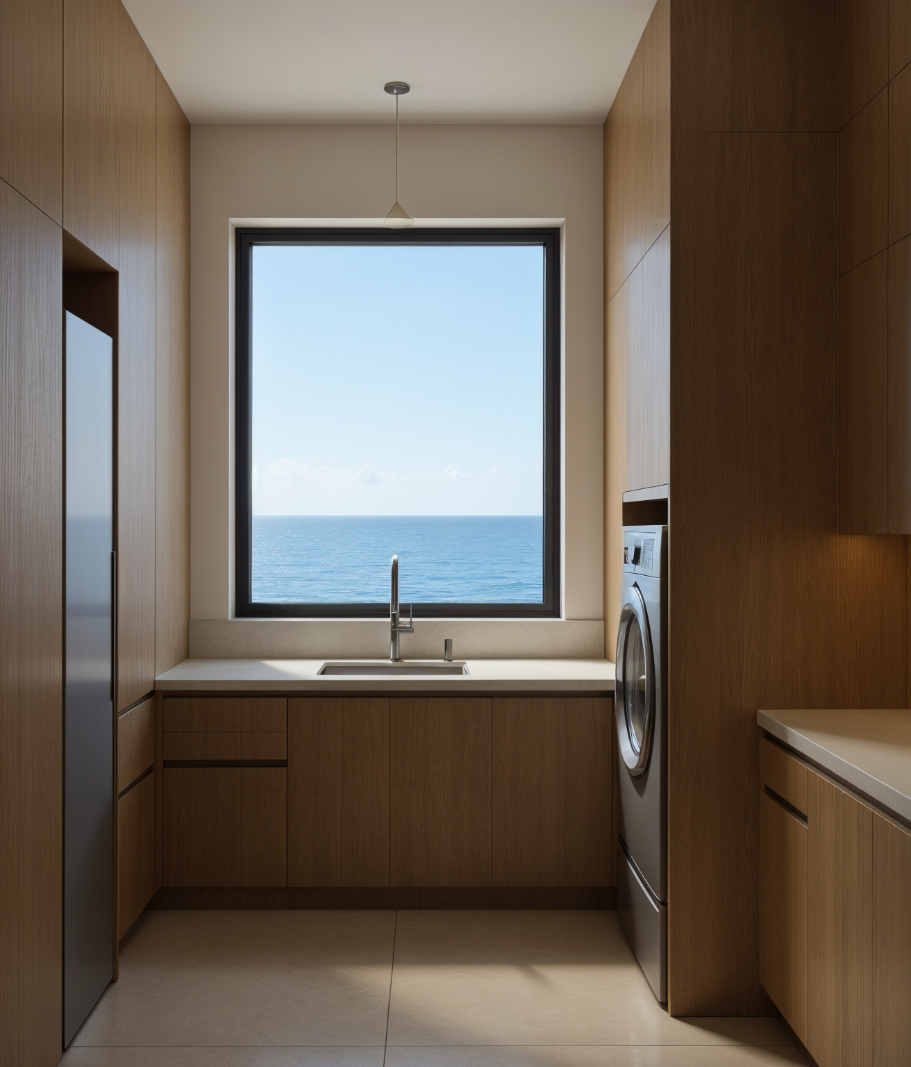 render this image bit replace the wall cladding with clean timber oak panels architecture