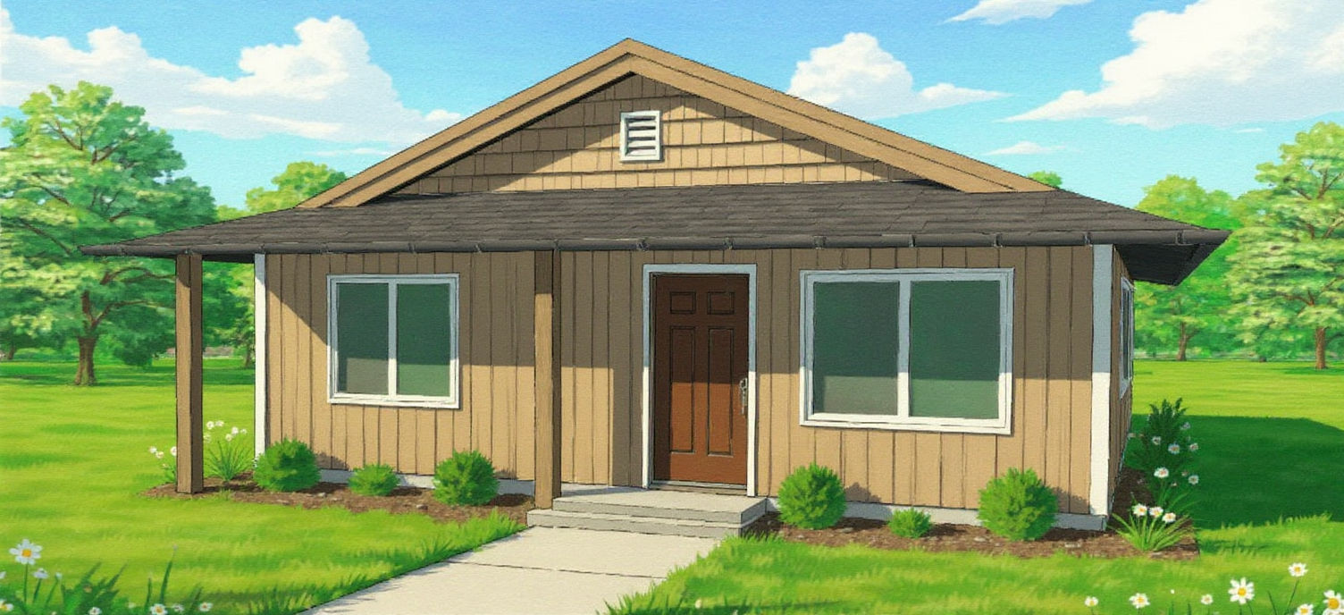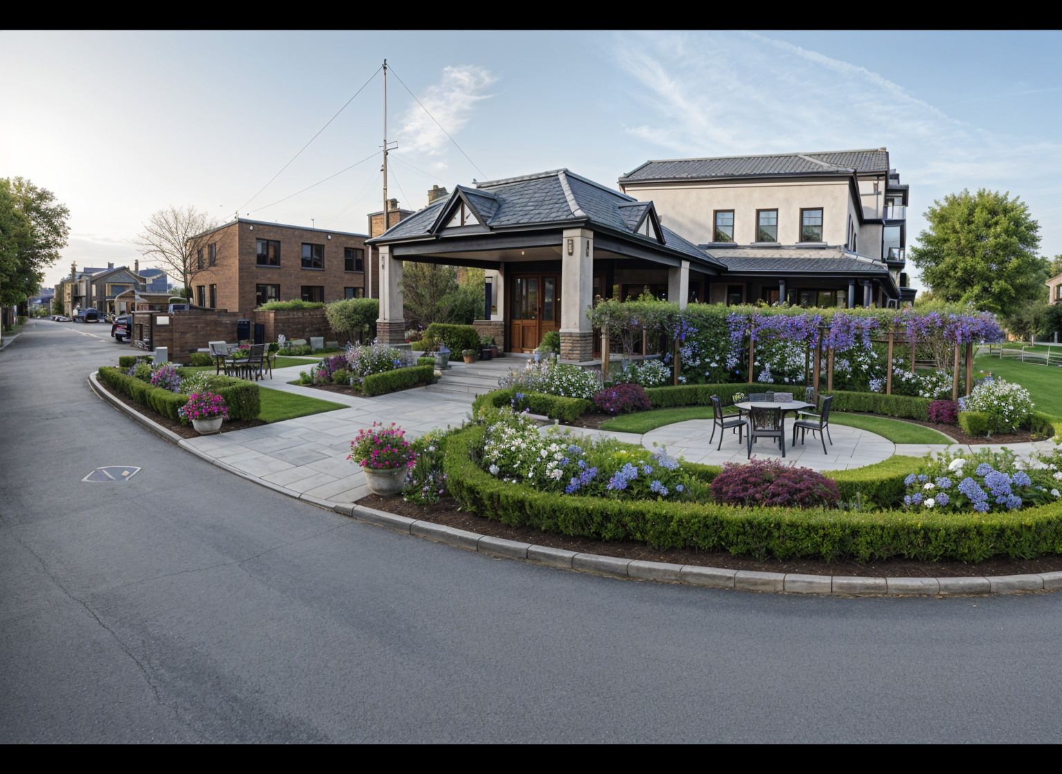 generate a visual of this house my architect has designed the windows are black aluminium the black grey areas of wall are black vertical timber cladding the grey walls are grey bricks with a concrete band around the buildings between storeys ther is also a gabian wall at the lower level in areas add some wild planting domestic in style by stylish and classy and add landscaping and trees in the backhround and foregroud thre are no houses or other built forms nearby just trees provide trees to ouside of site and show grey briick and provide mjore wild planting to rer garden do not chnage angles or the house design