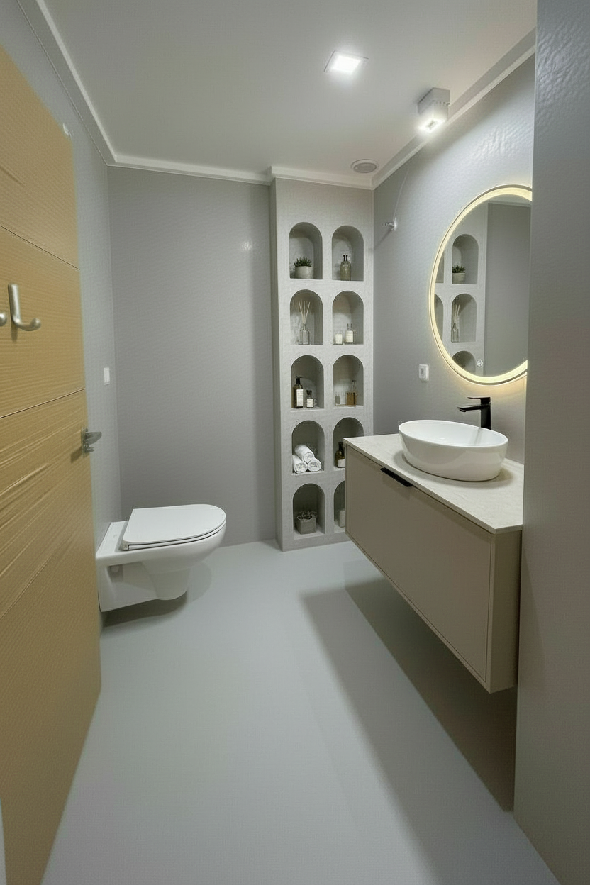 reviste todas las paredes suelo y muebles con microcemento en color topo