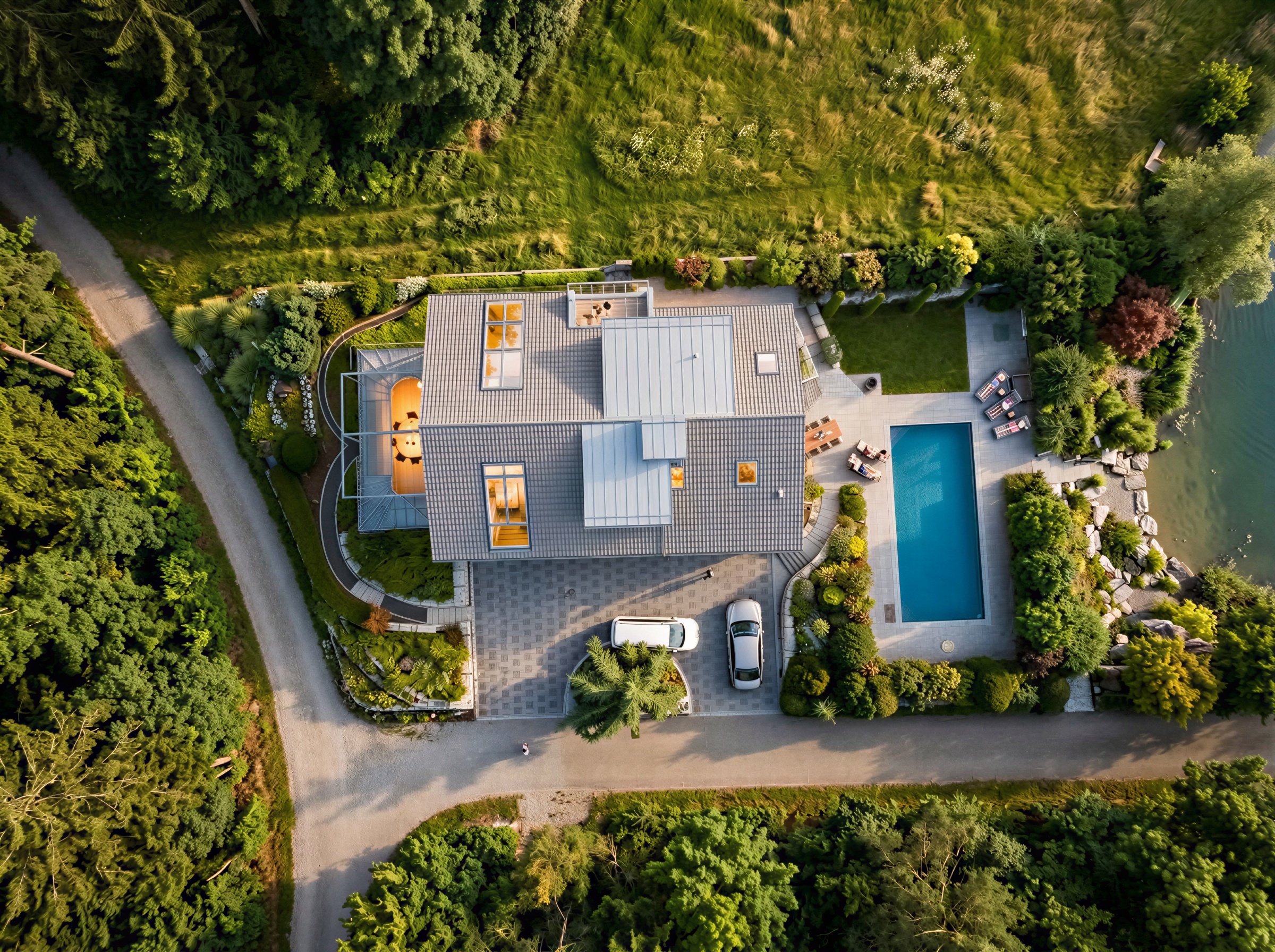 genau dieses rendering berarbeiten fotorealistisches innenraum foto exakt dieselbe perspektive und kameraposition wie das hochgeladene referenzbild 100 identische raumgeometrie exakt gleiche m belanordnung exakt gleiche verlegeart und richtung von platten und parket wie vorlage exakt identische fensterpositionen mit gleichem ausblick durch die fenster weiches nat rliches tageslicht leicht schr g einfallende sonne durch die grossen fenster zus tzlich alle r ume k nstlich hell ausleuchten sanfte realistische schatten blickrichtung ist nach norden sonnenlicht kommt von s den deckenbeleuchtungen in den r umen anbringen realistische materialien echte holztexturen stoff mit leichten gebrauchsspuren hochwertige oberfl chenreflexionen alle m bel ersetzen mit designerm bel ganzer grundriss freistellen und hintergrund anthrazit nat rliche farbwiedergabe leicht warme farbstimmung golden hour feeling das bild muss wie eine professionelle fotografie aussehen es soll ein echtes und reales foto sein canon eos r5 35 mm festbrennweite f 2 8 hyperrealistisch dslr qualit t raw aufnahme 8k aufl sung extrem scharf perfekte tiefensch rfe professionelle architekturfotografie
