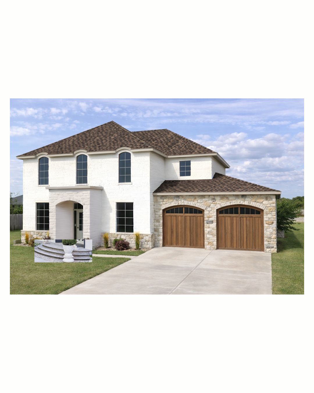 make front steps curved make front door wood tone to match garage doors