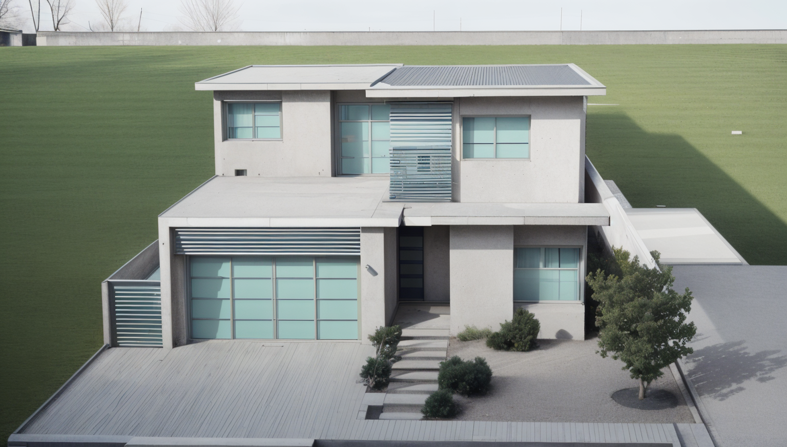 medium stain wood gray stucco white trim ocean view dusk architecture