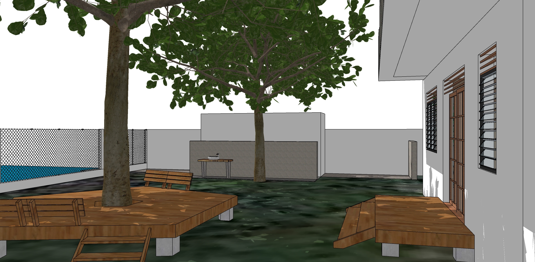 in a tropical beachfront to the left side render as close as possible to original image architecture