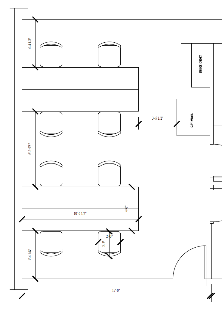 convert this floor plan into a realistic isometric 3d view of a full office show the space from an elevated angle with light grey color furniture and grey color comfortable chairs and one cabinet and printer as shows on the plan do not change the orientation of the floorplan