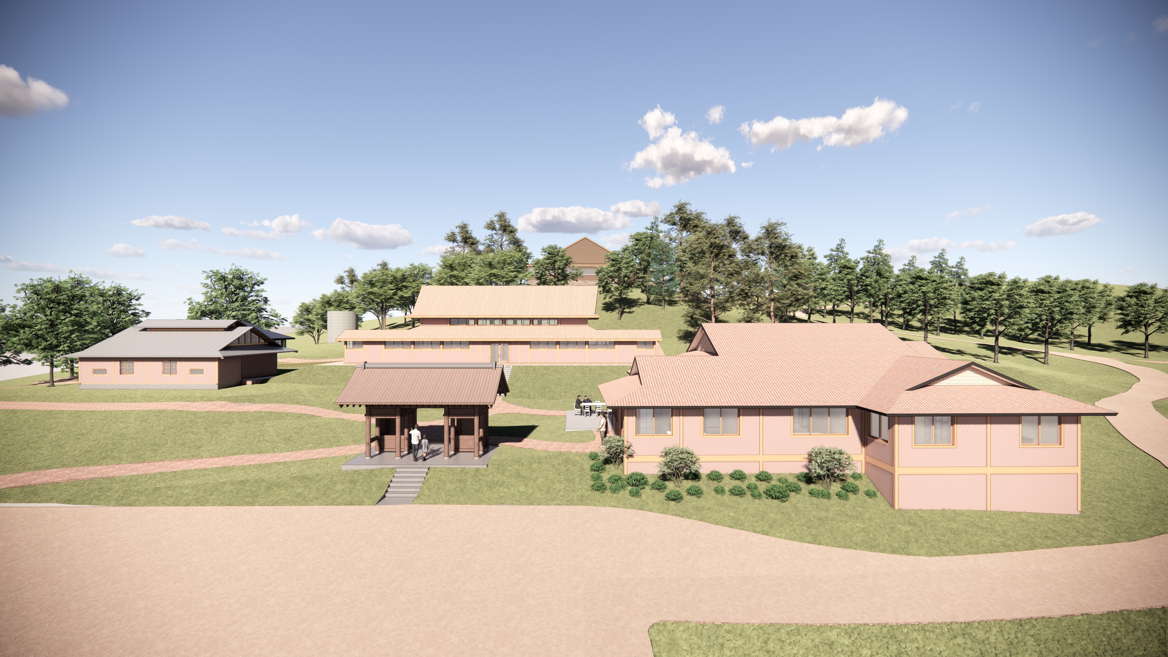 a manicured lawn layered flower beds low maintenance shrubs native plants stone pathway leading to the entrance