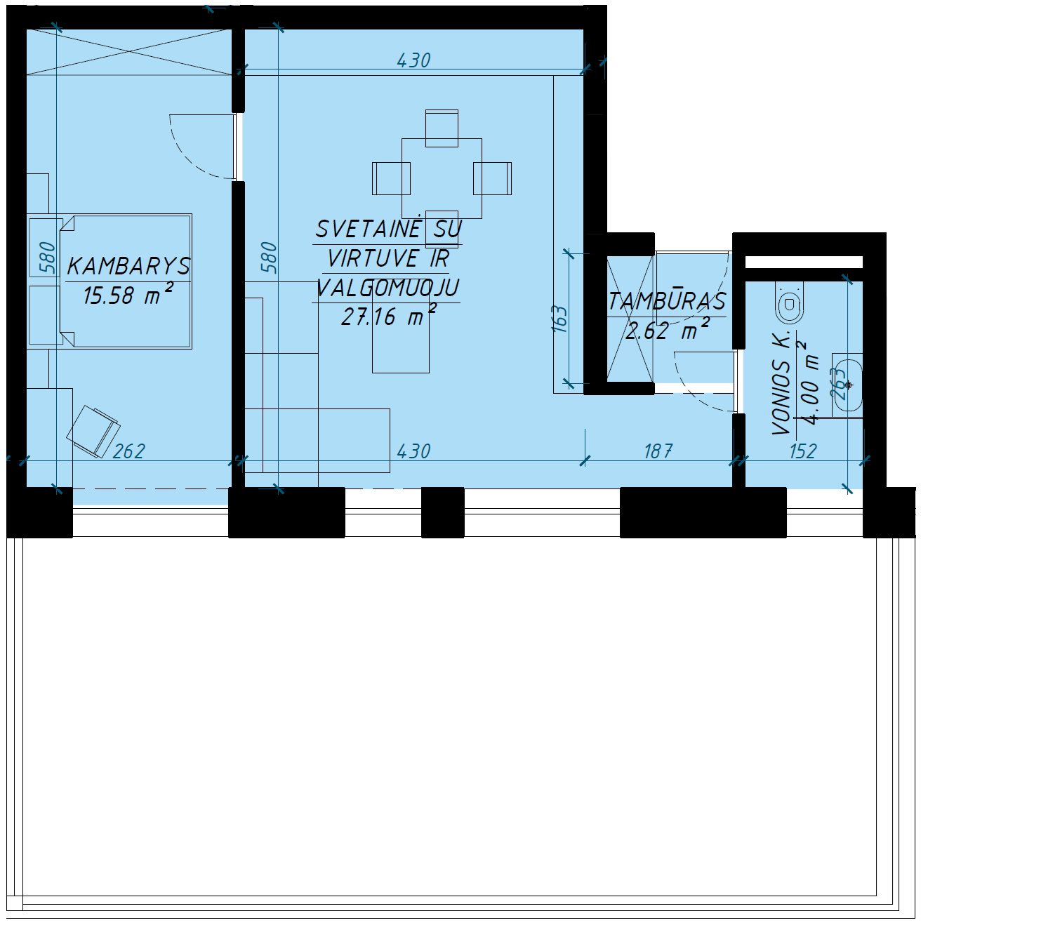 convert this floor plan into a realistic isometric 3d view of a full house show the space from an elevated angle with furniture walls and details visible dont show room names flat is in second floor plan with deck use the same furniture as shows on the plan do not change the orientation of the floorplan