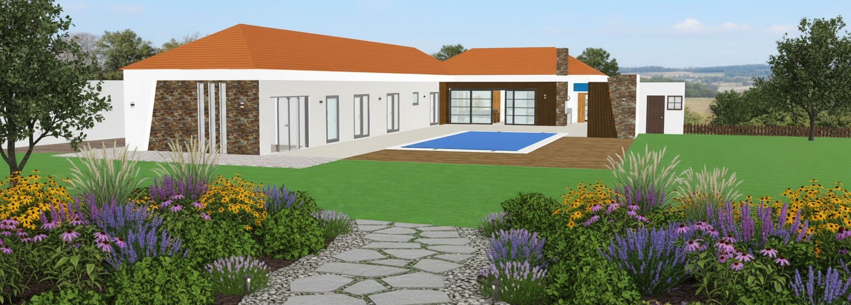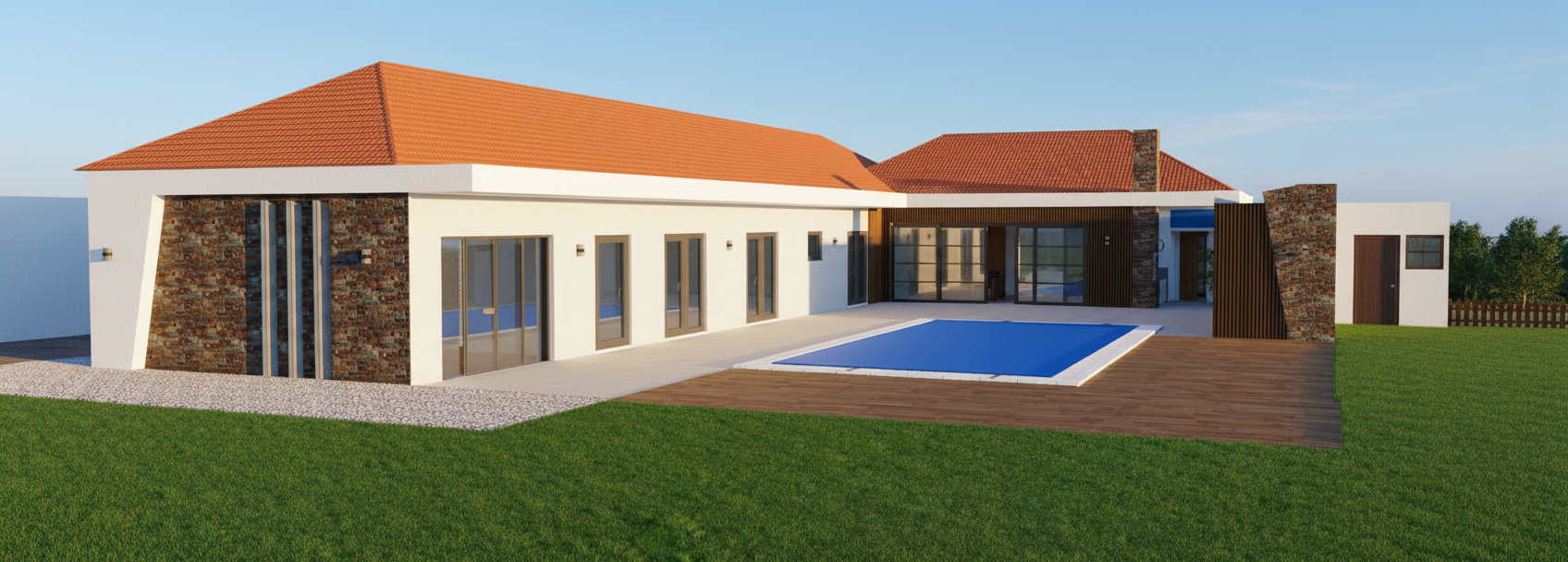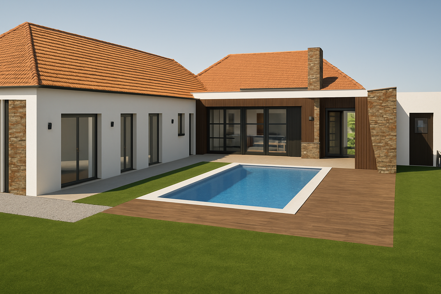 exterior shot japandi style rear house with deck