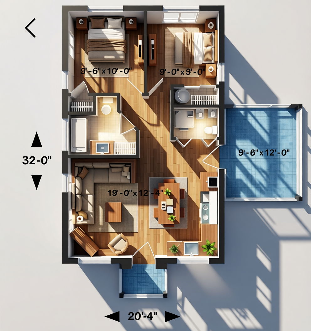 move the bathroom to the other side of the house to make it bigger eliminate the pantry