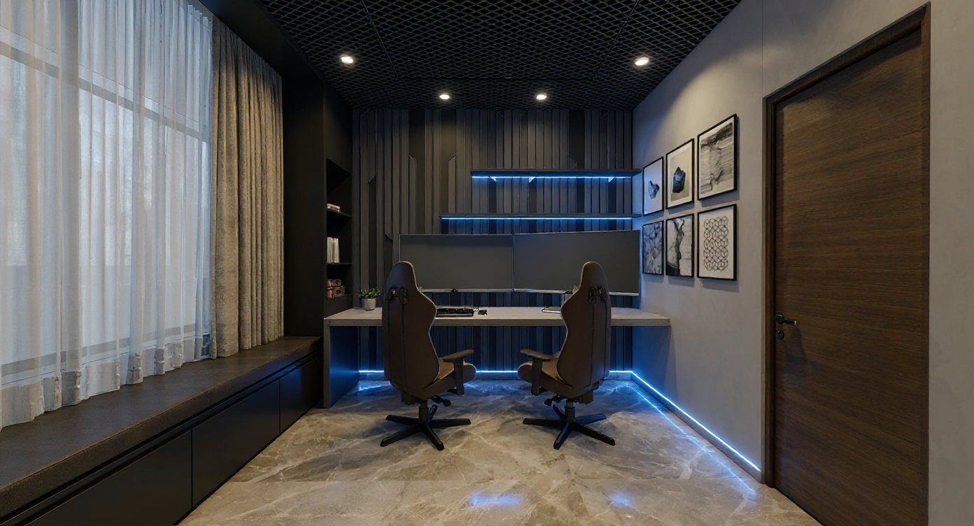 modern interior shot a room in a modern classic style with light sand beige walls with a large double bed with blankets and beautiful pillows the protruding wall behind the bed is decorated with decorative vertical slats or stripes next to it is a classic style wardrobe in pastel colors with gold handles also on the side of the bed is a bedside table above the table hangs a sconce that shines a modern chandelier hangs on the ceiling illuminating the room modern roman style curtains hang on the window the skirting board is made of a decorative grille in the same color as the wall and there is also the same decorative grille in the same color as the wall under the window on the ceiling is a luxurious modern chandelier that illuminates the room architecture