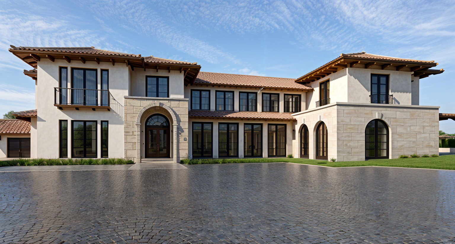 white natural limestone accent wall white stucco walls brown caly roof tiles