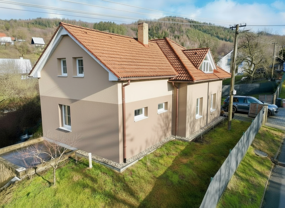 make the fasade colours as in the refference pictures fasade of the top 2 floors of the house