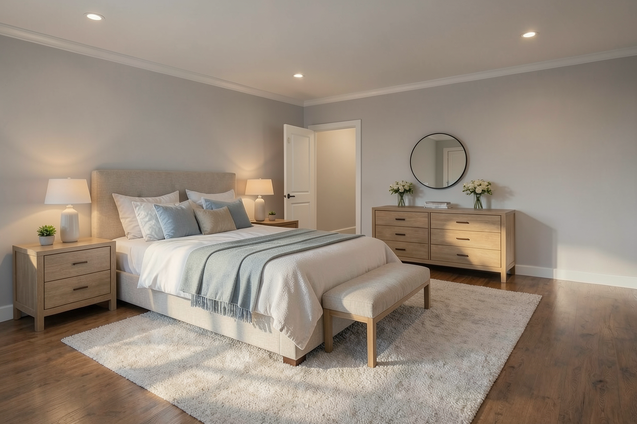 convert this floor plan into a realistic isometric 3d view of a full house show the space from an elevated angle with furniture walls and details visible convert this floor plan into a realistic isometric 3d view of a full house show the space from an elevated angle with furniture walls and details visible convert this floor plan into a realistic isometric 3d view of a full house show the space from an elevated angle with furniture walls and details visible render a luxurious modern interior based on a detailed floor plan create an open and inviting atmosphere with warm lighting use soft neutral tones like beige and taupe for the walls and accents of rich walnut brown for the wooden flooring in the bedrooms and white travertine for the other area the living area features plush cream sofas with gold and teal cushions the kitchen has taj mahal countertops in white with greige veins and the dining table is made of dark oak with elegant high back chairs living room has the same floor has the kitchen emphasize a cozy yet sophisticated vibe throughout accented with indoor plants and contemporary artwork the overall ambiance should feel warm elegant and welcoming don t change the structure like window door stairs it needs to follow the floor plan provided don t add new doors or new walls use the same furniture as shows on the plan do not add structure like toilet or new door do not change the orientation of the floorplan use the same furniture as shows on the plan do not change the orientation of the floorplan use the same furniture as shows on the plan do not change the orientation of the floorplan