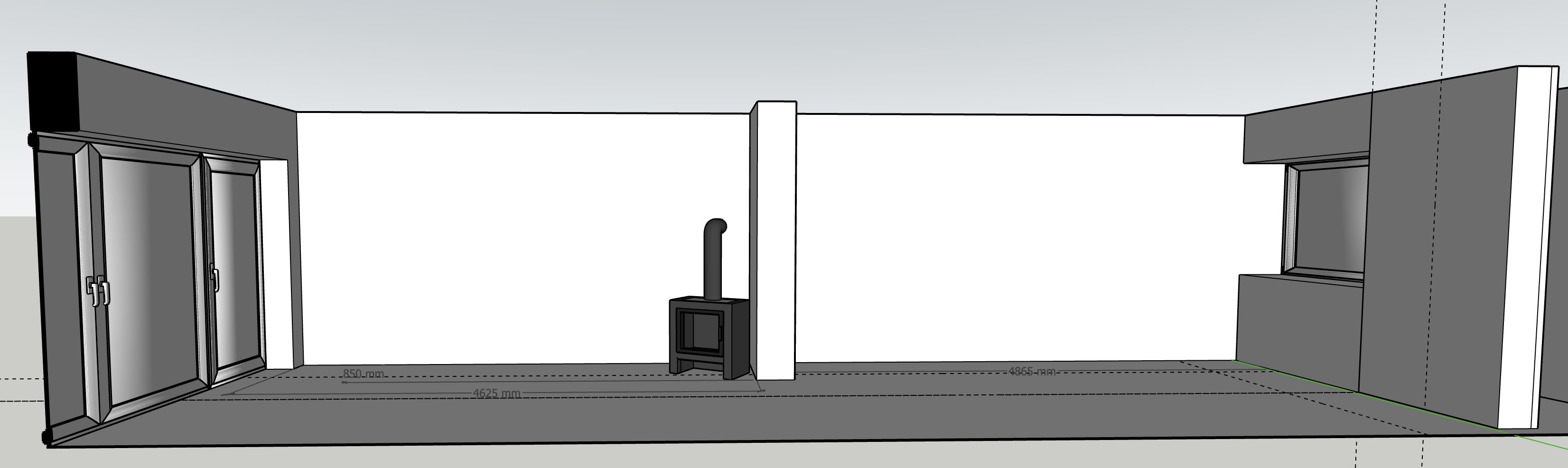 keep the original layout and geometry of the space exactly as it is design an interior for a mountain apartment add a dark kitchen with wooden elements modern alpine style place a kitchen along the right wall dark matte cabinets combined with natural oak wood add a wooden dining table for 4 people in the center of the room place a tv on the wall near the sofa with a low wooden tv cabinet style modern alpine mountain apartment warm cozy natural materials oak wood stone dark kitchen cabinets lighting warm ambient lighting cozy atmosphere colors dark kitchen oak wood beige sofa natural tones keep windows walls and structure unchanged respect the original floor plan do not move walls windows or doors do not change the camera angle only furnish and design the interiorstyle reference modern alpine chalet interior natural oak wood dark kitchen stone details warm lighting luxury mountain apartment keep the layout it is view from above