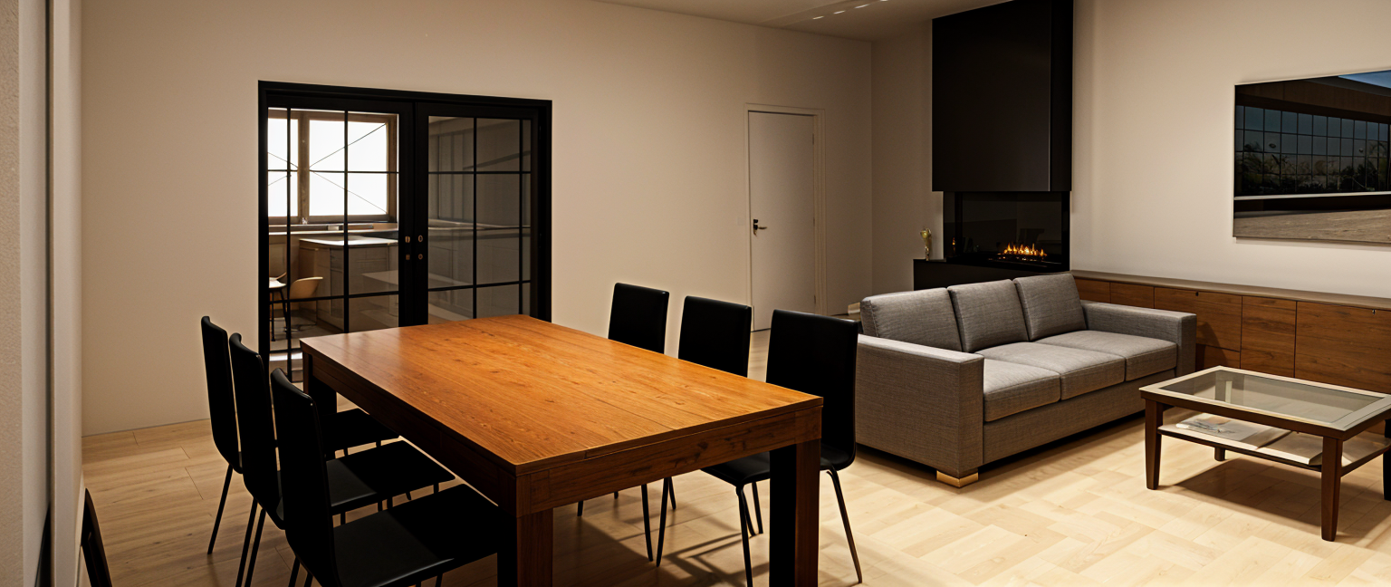 make this look photo realistic add a reflection in the mirror make ceiling beams slightly larger