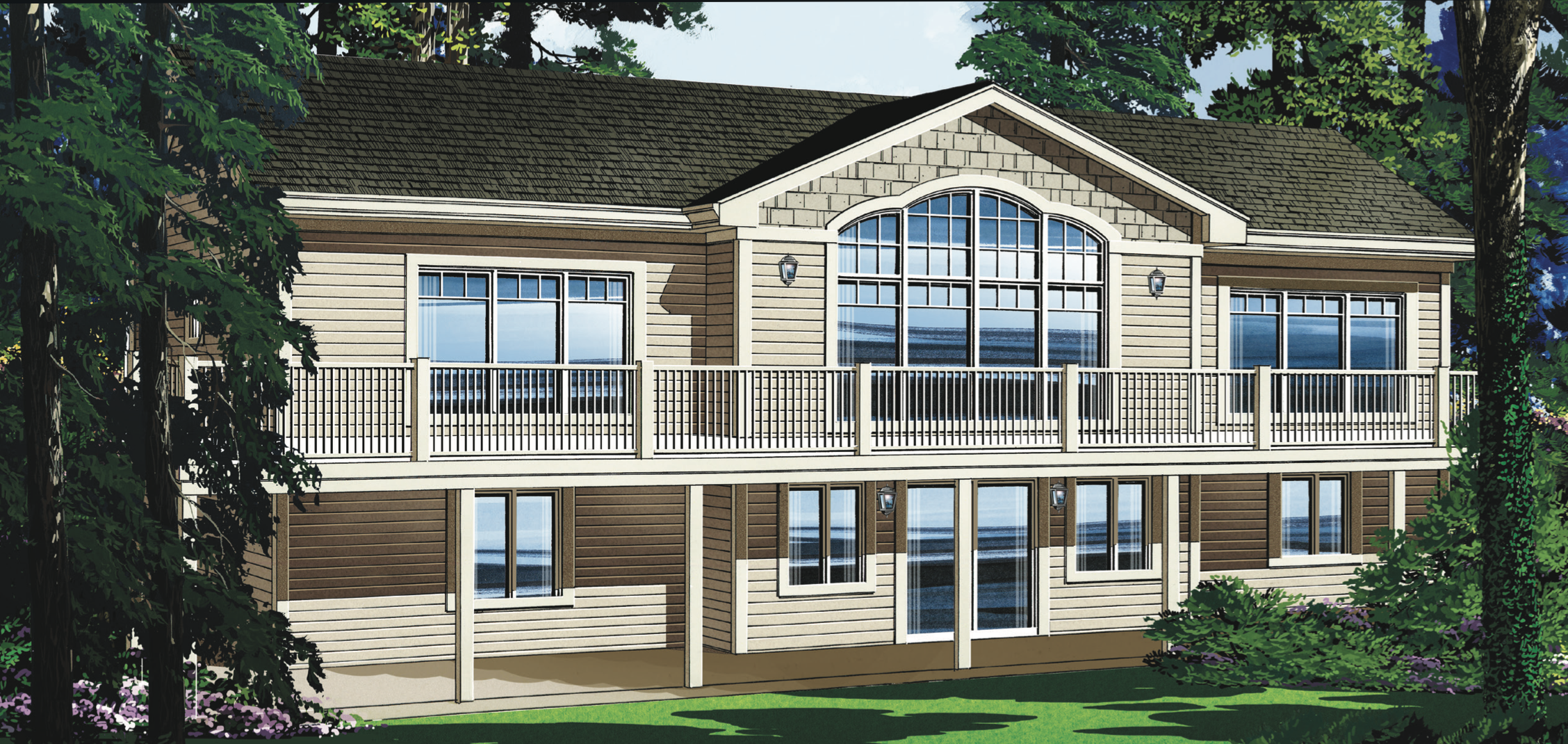 modernist exterior shot create a high end exterior architectural rendering based exactly on the provided elevation image critical do not change any architectural elements proportions materials colours window placements railing design or structure the building must remain identical to the reference style direction modern photorealistic builder marketing rendering clean soft and elevated not stylized or cartoon like lighting soft natural daylight or warm late afternoon light subtle shadows balanced highlights no harsh contrast realistic sky with soft clouds materials do not change colours improve realism of existing siding shingles glass and railings with accurate texture depth and natural light reflection no colour changes only refinement glass slight reflectivity with soft sky and landscape reflections interior should feel slightly visible but not detailed landscaping natural refined and minimal realistic grass not overly saturated soft variation in tone subtle planting near foundation no dramatic landscaping changes environment add depth with soft background trees and atmospheric perspective avoid overly dense or dark forest tones render quality ultra clean edges no outlines no sketch effect no cartoon style high end residential marketing quality camera straight on perspective matching original composition slight depth of field for realism mood calm premium inviting slightly idealized but believable architecture