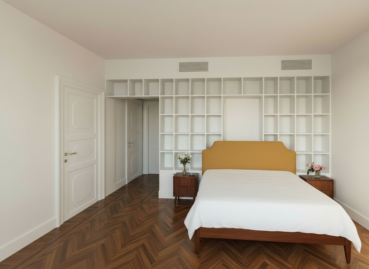make the attached rendering more photo realistic we need to see the ceiling grid but the ceiling grid and tiles need to be white we need the colors and textures of the materials to stay the same we need the look of the architectural elements and furniture to stay the same we need the wood wall and the wood flooring to be similar medium brown wood tone color we need it to feel modern white bright and vibrant