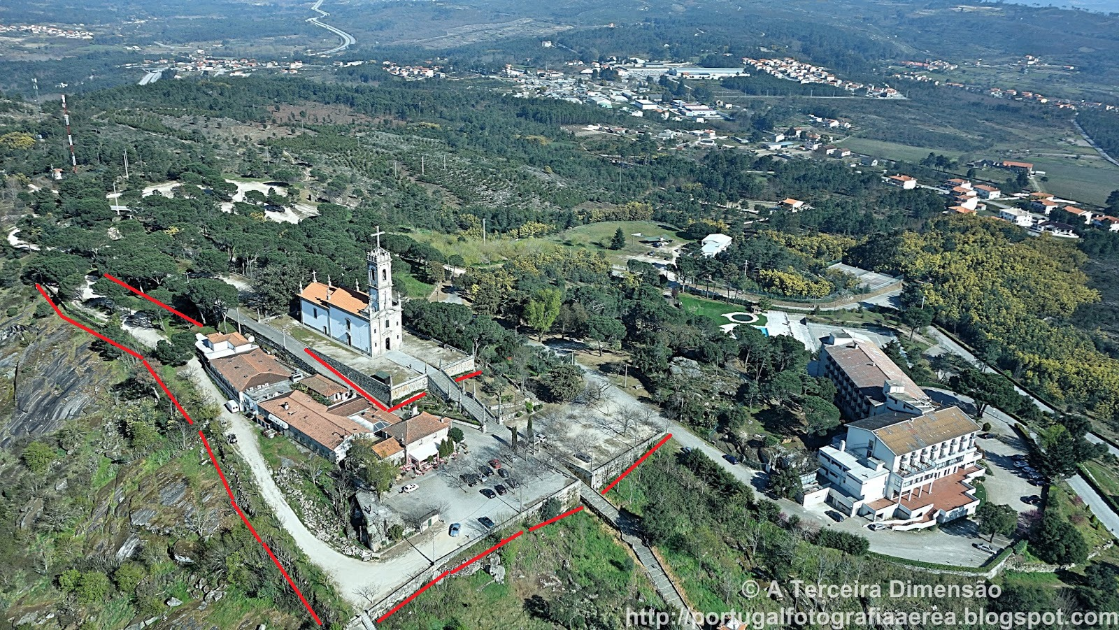 nao alteras nada a n o ser escurece foto como se fosse de noite e onde estao as linhas vermelhas mete focos de ilumina o em continuidade fixos no ch o e a apontar para cima com o distanciamento entre cada foco com a distancia normal usada para ilumina o exterior de muros de pedra em locais turisticos como o caso da ermida monte da senhora do castelo em mangualde