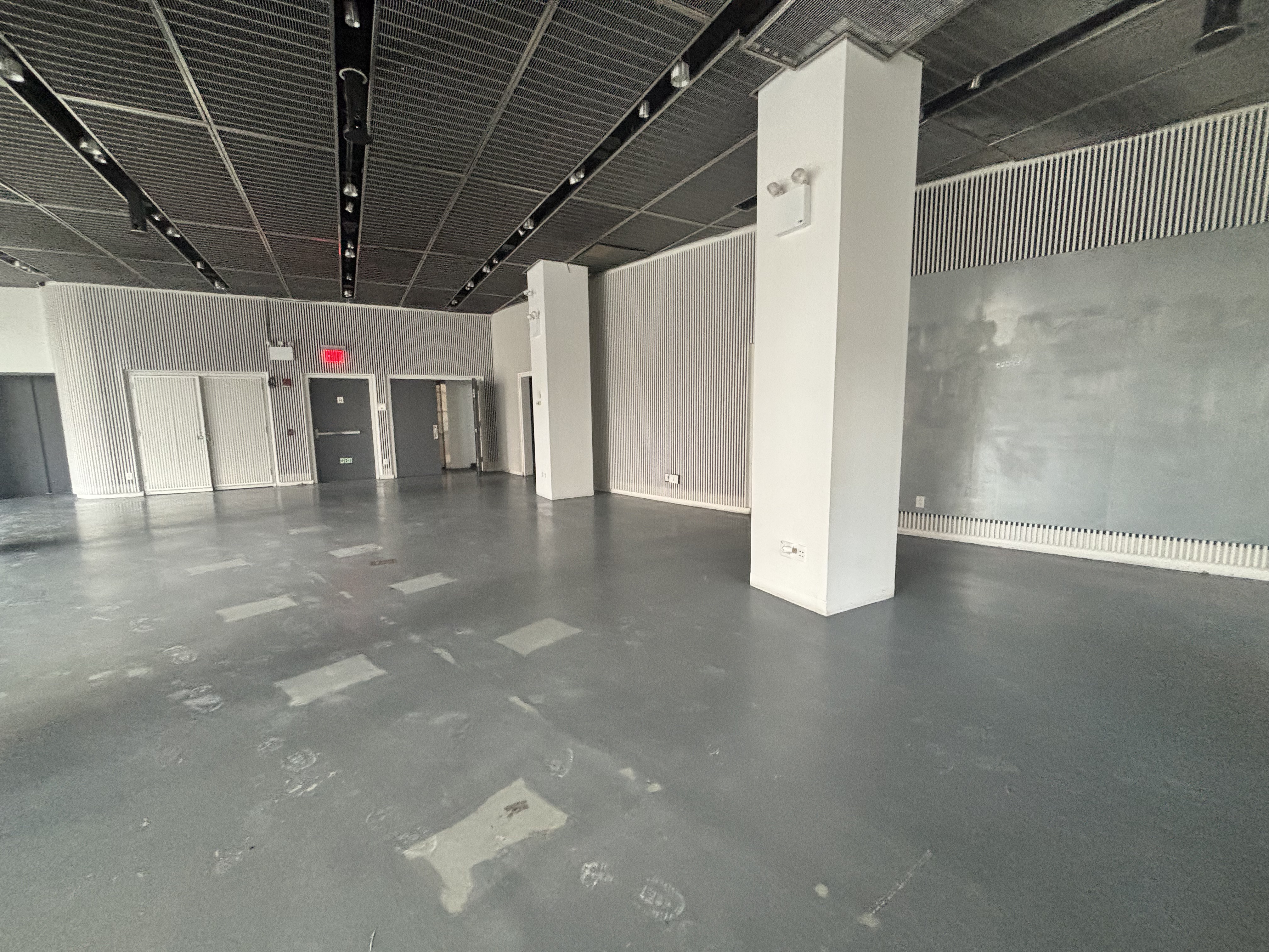 add wooden paneling to the back wall create a bar out of stacked glass blocks and give it a warm light amber glow
