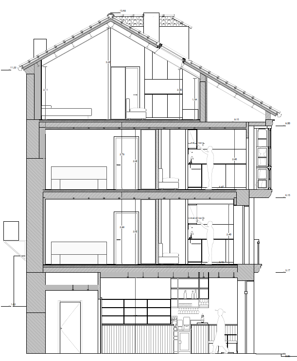 secci n de un edificio de viviendas en la planta baja hay un local destinado a bar las viviendas tienen en la primera planta unos balcones a la calle en la segunda planta una galer a gallega